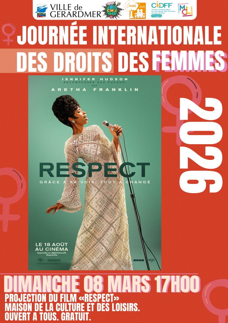 Le dimanche 8 mars à 17h00, à la Maison de la Culture et des Loisirs, projection gratuite du film Respect, biopic consacré à la chanteuse Aretha Franklin. Cette séance ouverte à tous s’inscrit dans la volonté de mettre en lumière des parcours féminins inspirants.