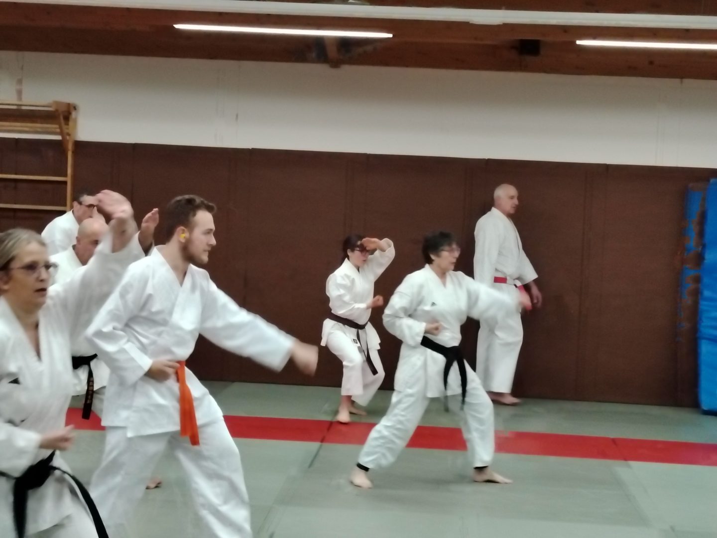 La base de ce stage était les Kihons, enchaînements techniques de défense, d’attaque et de déplacement que l’on répète seul.