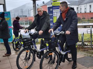 Le système des vélos Fluo, assuré par l’entreprise française Fifteen, est pensé comme une solution pour parcourir les derniers kilomètres après un trajet en train. Innovant à l’échelle d’une région, il renforce l’intermodalité train + vélo en Grand Est. À Remiremont, il est utile de rappeler que ce sont près de 370 000 voyageurs qui transitent par la gare (4ᵉ du département). Enfin, le maire de Remiremont et le vice-président du conseil régional ont également annoncé qu’un autre projet allait prochainement être lancé sur ce même site. Il s’agira de la réhabilitation complète de la gare routière dont le chantier, d’une durée de 6 mois, débutera en juillet prochain. Budget annoncé : 750 000 euros. Il s’agira du premier chantier dont la maîtrise d’ouvrage sera entièrement assurée par la région Grand Est. Esthétique et pratique, cette réhabilitation permettra également de rendre plus « lisible la liaison entre la gare routière et ferroviaire », assure David Valence.