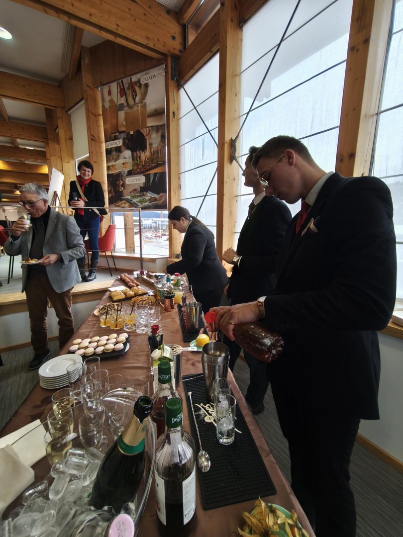 Ainsi, Franck Leroy était en visite du Lycée des Métiers de la Restauration et de l’Hôtellerie de Gérardmer où il a naturellement été accueilli par le proviseur Francis Vignola et le maire de Gérardmer Stessy Speissmann Mozas. Le président de la région Grand Est est notamment passé par les cuisines et la salle du restaurant d’application pour quelques dégustations, mais aussi des travaux pratiques ! Il s’est ensuite rendu à l’Office de Tourisme de Gérardmer où l’attendait la directrice Florence Dupont et une partie de son équipe : un temps d’échanges sur l’activité de l’Office, les projets en cours et à venir, et les enjeux de fréquentation touristique. Franck Leroy a fini sa visite à la station de ski Labellemontagne, en présence de Jean-Yves Remy, Directeur de la station La Bresse-Hohneck, et a même chaussé les skis !