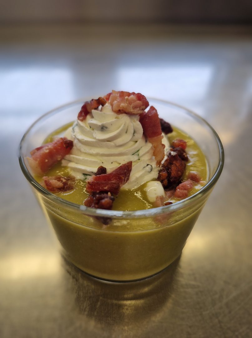 Toute l’équipe de cuisine a pris beaucoup de plaisir à réaliser des plats comme de la soupe de pois cassés au lard fumé, des verrines houmous cumin – chantilly ail et fines herbes, un curry de pois chiches, des lentilles locales, ainsi qu’un brownie haricots rouges et sa crème anglaise.