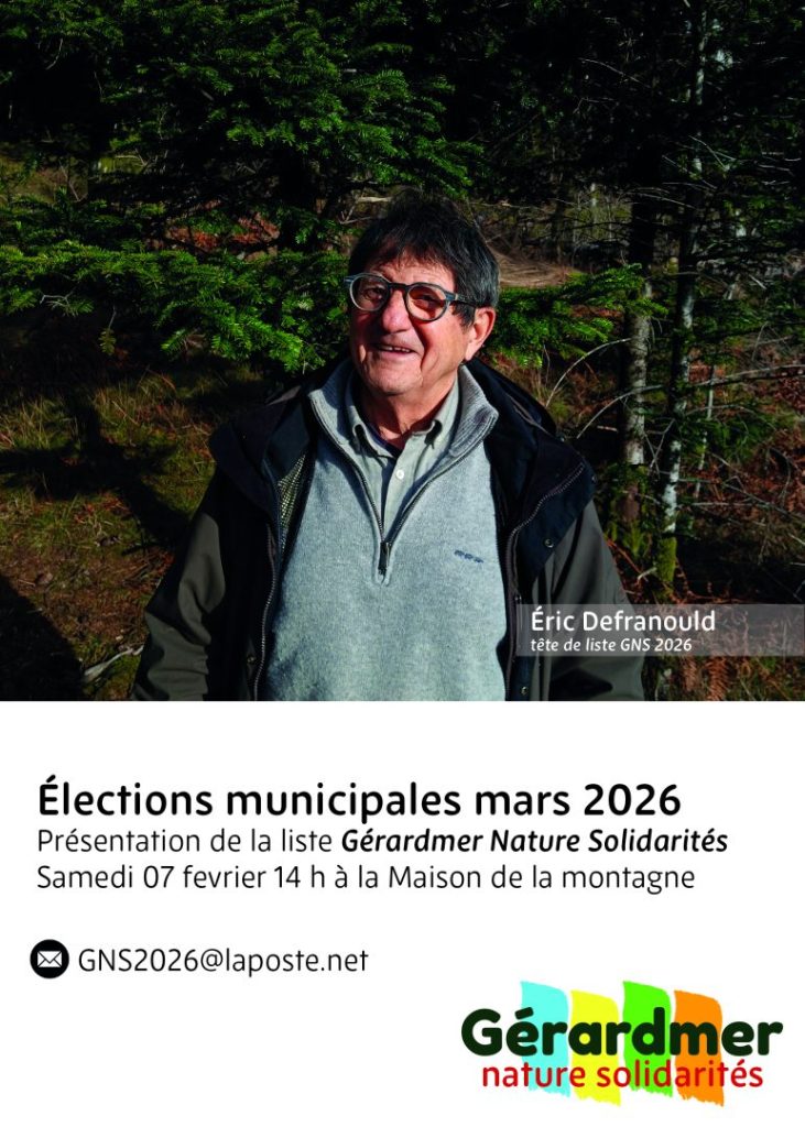La présentation publique de la liste GERARDMER NATURE SOLIDARITES aura lieu demain samedi 7 février à 14 heures, Maison de la Montagne.