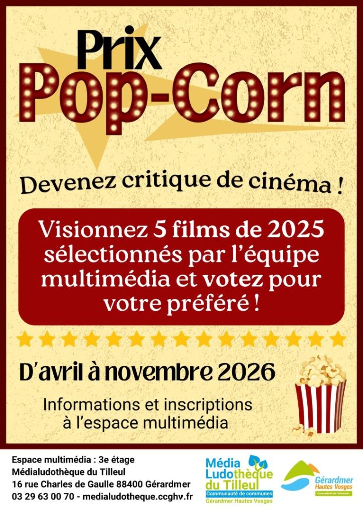 Le Prix Ciné de la Médialudothèque fait son grand retour cette année… Sous un nouveau nom : PRIX POP-CORN !