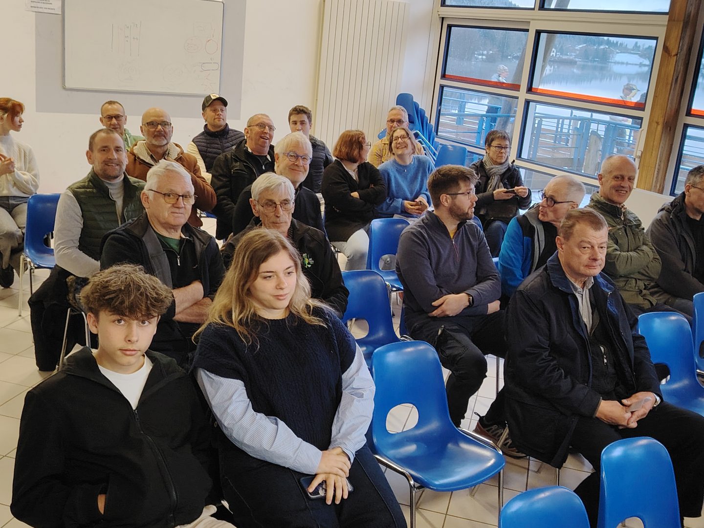 Le trésorier, Éric Thomas, a ensuite détaillé la situation financière de l’association. Pour l’exercice 2025, les produits s’élèvent à 15 045 €, pour 15 051,64 € de charges, soit un résultat très légèrement déficitaire de –6,64 €. Les principales dépenses concernent les équipements et les dotations aux amortissements, tandis que les recettes proviennent essentiellement des cotisations des membres, de la participation aux événements sportifs organisés sur le lac – notamment le Triathlon et le Xterra, avec un remerciement particulier adressé à Guillaume – ainsi que des subventions accordées par l’ASG. L’approbation des comptes a été soumise au vote et les membres du club ont donné quitus au trésorier.