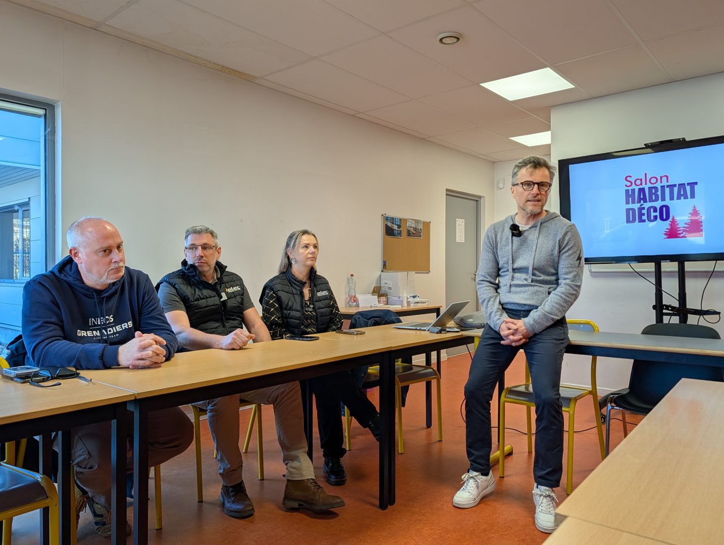 En raison des élections municipales, la conférence de presse de présentation ne s’est pas tenue à l’Hôtel de Ville, mais à la Pépinière d’Entreprises ce jeudi matin. Autour de Jean-Philippe Foucat se trouvaient Arnaud Noël, directeur du service Commerce, Équipements et Événementiel – CEE – de la Ville, ainsi que Sévérine et Vincent Tourre, de l’entreprise déodatienne I-Elec. Cette société est spécialisée dans l’installation de panneaux photovoltaïques, de bornes et de prises renforcées pour la recharge à domicile des voitures et des vélos.