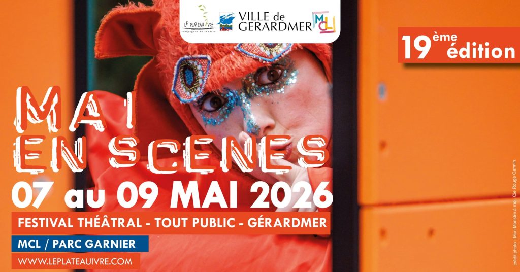La Compagnie de théâtre Le Plateau Ivre et la MCL de Gérardmer présentent la 19ème édition du Festival Mai en Scènes à Gérardmer du 07 au 09 mai 2026 proposée dans le cadre du mois de la culture de Gérardmer. Rendez-vous à la MCL de Gérardmer et au Parc Garnier pour des expériences artistiques inédites ! Au programme : cabaret, théâtre, cirque, théâtre d’objet, film-documentaire, road-trip musical et concerts !