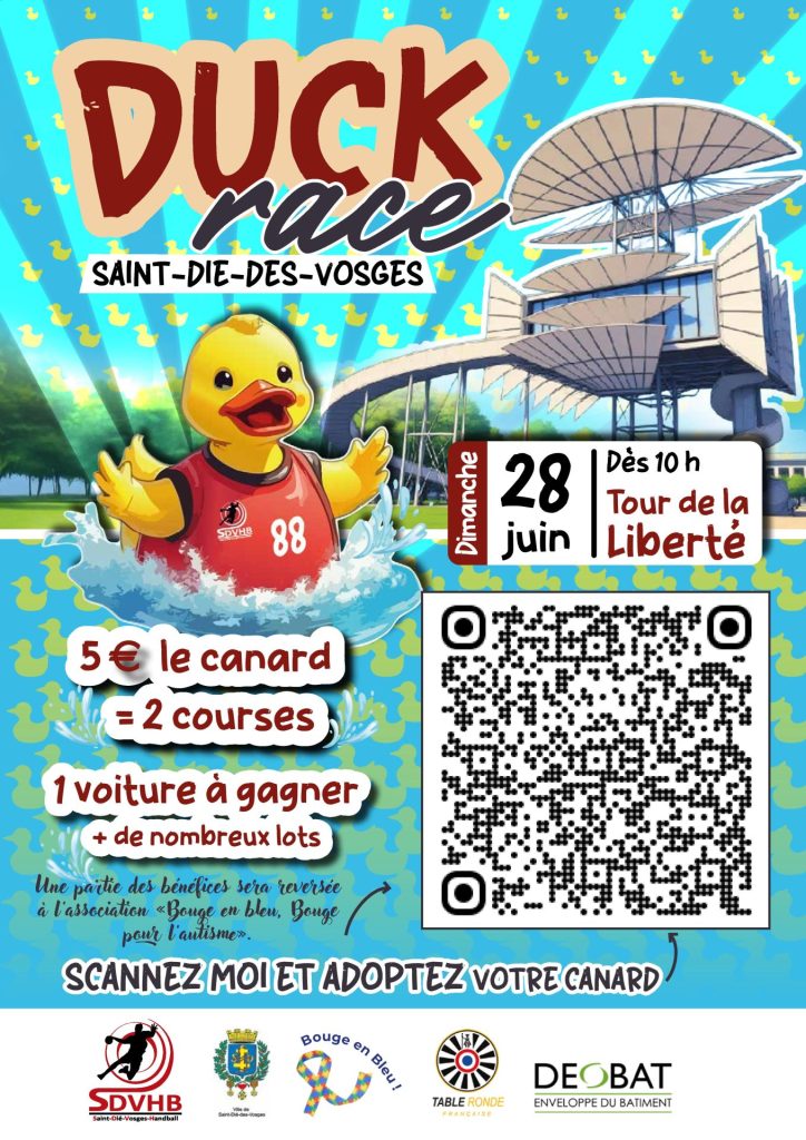 Une nuée de canards s’apprête à descendre la Meurthe cet été. Dimanche 28 juin, le Saint-Dié Vosges Handball – SDVHB – organisera la première Duck Race de Saint-Dié-des-Vosges, en partenariat avec la Table Ronde Française et avec le soutien de la Ville. Une partie des bénéfices sera reversée à l’association Bouge en Bleu, Bouge pour l’autisme.