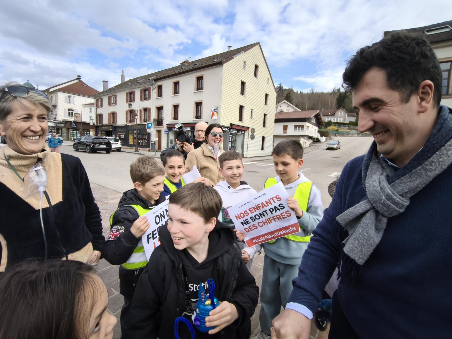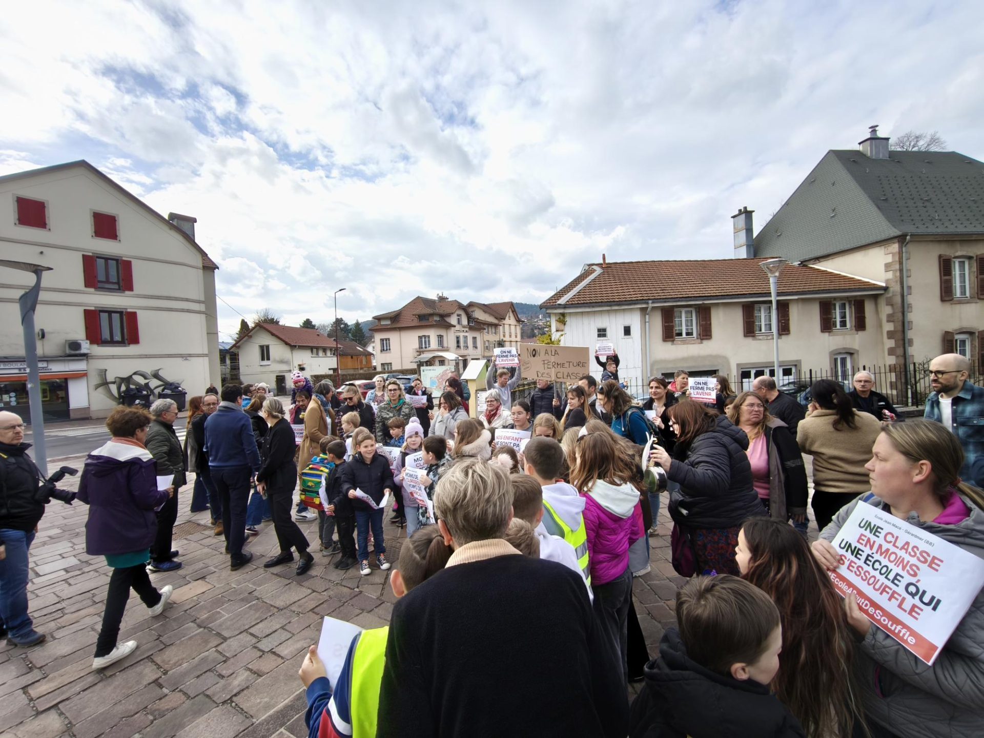 Les parents d’élèves de l’école Jean Macé se sont mobilisés ce vendredi après-midi à la sortie des cours afin de tirer la sonnette d’alarme suite à l’annonce de la fermeture d’une classe à la rentrée prochaine. « Nous nous mobilisons pour défendre des conditions d’apprentissage pour les enfants et des conditions de travail pour les enseignants. Deux choses qui sont essentielles et que cette fermeture ne permettrait clairement pas de maintenir. Ce serait la deuxième année consécutive qu’une classe fermerait, et si ça se fait cette année, on franchirait clairement une ligne rouge synonyme de forte dégradation de ces conditions d’apprentissage et de travail. (…) Nous sommes conscients de la situation en matière d’effondrement démographique à laquelle Gérardmer n’échappe pas, néanmoins, nous estimons que la fermeture pure et simple n’est pas une solution. C’est pour ça que nous demandons également que tous les acteurs concernés (enseignants, élus locaux, représentants de l’Éducation nationale, parents, etc.) puissent se réunir autour d’une table pour faire face à cette problématique et pour que le système scolaire puisse être repensé à l’échelle de la commune », déclare l’une des représentantes des parents d’élèves présentes sur place ce vendredi. Après s’être réunis devant l’école, parents et écoliers se sont rendus place des Droits de l’Homme ou le maire et plusieurs de ses adjoints les ont rejoints afin de leur exprimer leur soutien.