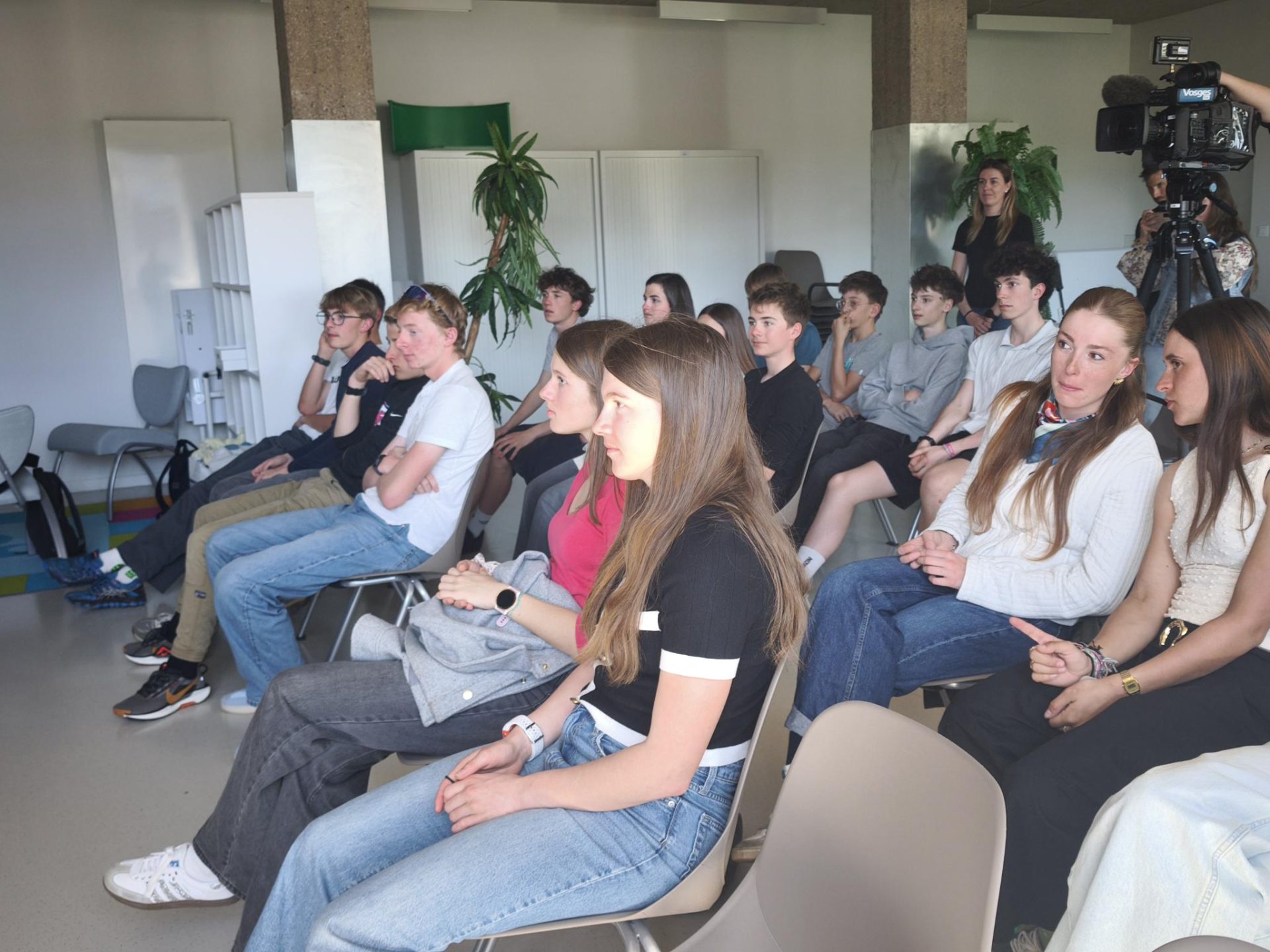 Accompagnées de Sylvie D’Alguerre, conseillère régionale déléguée à l’égalité femmes/hommes, on retrouvait ainsi face aux élèves les deux biathlètes Amandine MENGIN et Paula BOTET, ainsi que la skieuse de fond Delphine CLAUDEL, toutes trois licenciées au club de La Bressaude et membres de l’équipe de France dans leur discipline. Un joli trio qui n’était pas inconnu du public, composé d’une quarantaine de jeunes de la quatrième à la terminale qui évoluent principalement dans les disciplines nordiques, sans oublier quelques skieurs alpins. « Elles vont évoquer leur saison de ski, que ce soit les bons côtés comme les coups durs, leur passage en ski-études ici à Gérardmer et tout l’enjeu de pouvoir concilier le sport de niveau avec les études, que ce soit au lycée ou même après, car l’aventure ne s’arrête pas après le BAC, bien entendu », précise Maxime Laheurte, coordinateur du pôle à la Haie Griselle.