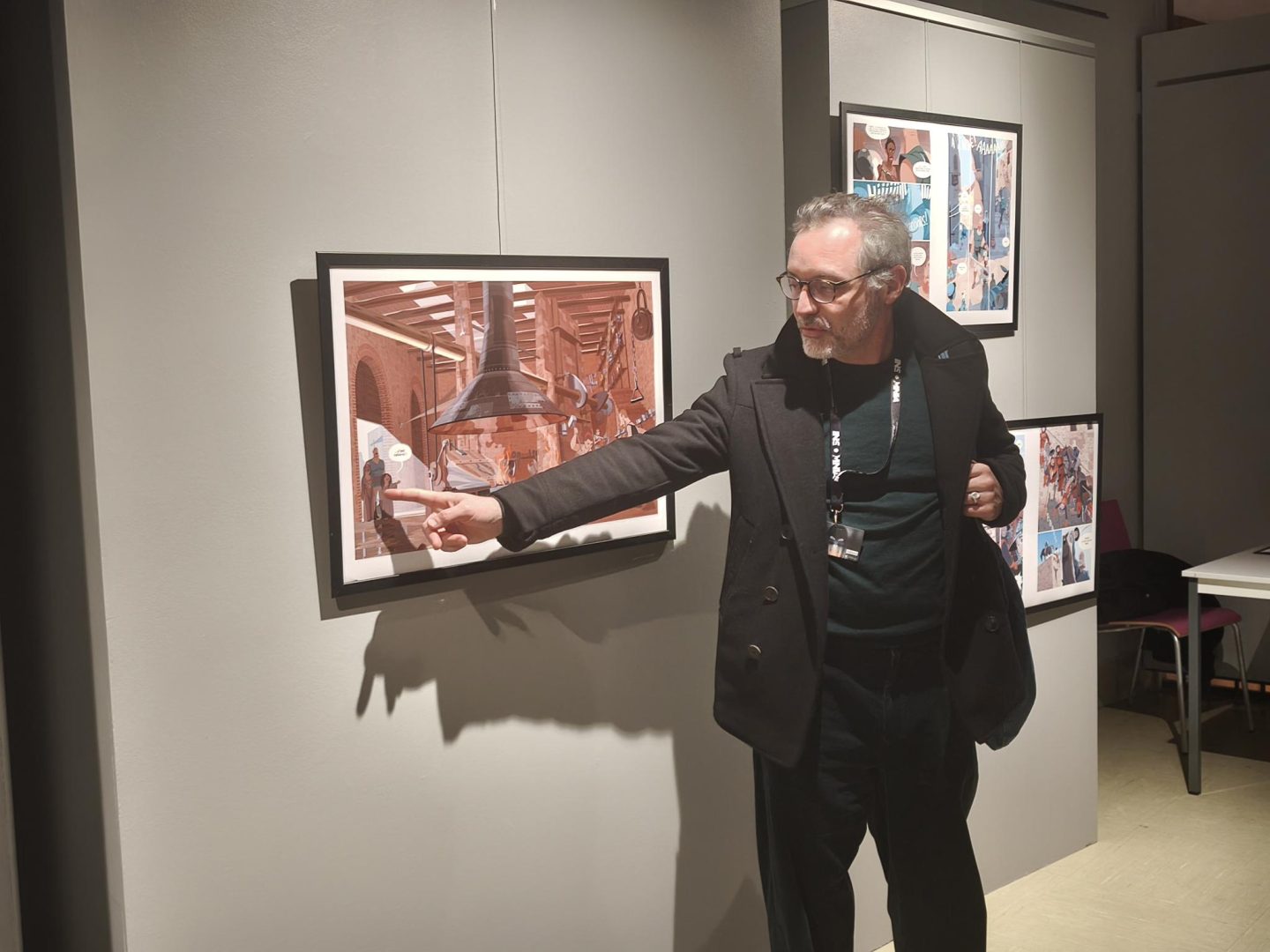 L’auteur était naturellement présent ce vendredi soir à la galerie de la MCL afin de présenter cette exposition et ces deux BD éminemment fantastiques mais aux univers bien distincts. Zombillénium, qui est arrivée à son terme et compte 6 tomes, a vu le jour en 2009 pour devenir progressivement un classique. Un film d’animation, préquelle de la BD, est même sorti en 2017, recevant un excellent accueil de la part des jeunes et moins jeunes amateurs de BD et de ciné. La même année, ce dernier avait d’ailleurs gagné rien de moins que le prix du public au festival du film jeune public Graines des Toiles, organisé chaque année par la MCL de Gérardmer ! Bref, si vous ne connaissez pas encore, tout est à disposition, foncez !
