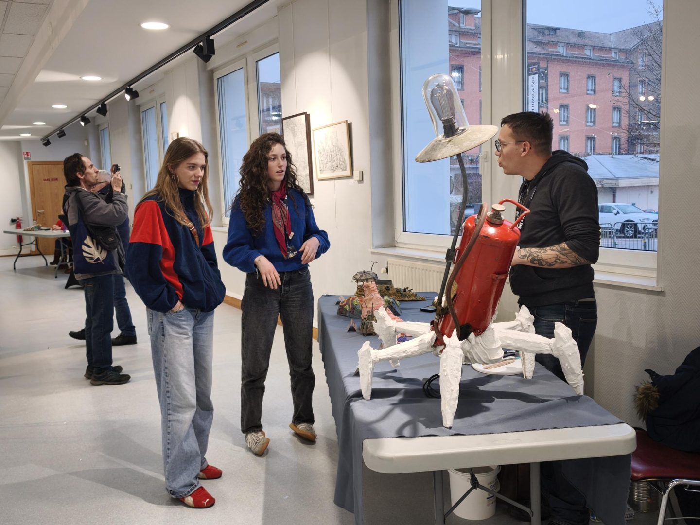 Avec le retour du chapiteau sur la place du Tilleul, c’est l’exposition arts plastiques qui s’est déplacée de la Villa Monplaisir au rez-de-chaussée de l’espace Tilleul, en lieu et place du Grimoire. Un choix judicieux car cette salle est, rappelons-le, habituée à accueillir des artistes en tous genres et tout au long de l’année. Plus proche du centre-ville, elle offre une meilleure exposition (sans mauvais jeu de mots) à celles et ceux qui ont été sélectionnés cette année et qui étaient réunis ce jeudi après-midi à l’occasion du traditionnel vernissage. L’occasion pour la présidente du festival Anne Villemin de remercier les forces vives qui ont permis de monter ce nouvel opus, à savoir Martine et Béatrice, bénévoles en charge de dénicher les exposants, mais aussi la ville de Gérardmer qui met à disposition les lieux.