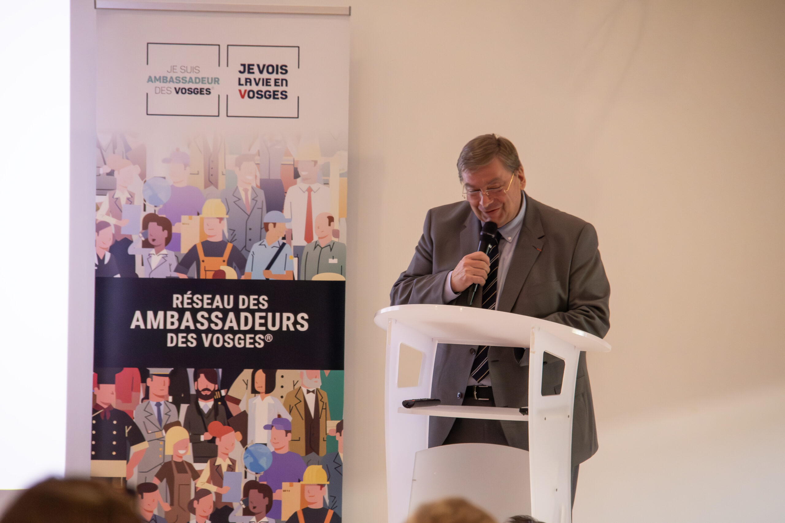 L’amphithéâtre du campus de Mauffrey Académie accueillait ce jeudi les membres des Ambassadeurs des Vosges, un réseau d’entrepreneurs au nombre de 163, animé par le conseil départemental et ayant pour objectif de réunir les dirigeants du département afin de permettre des rencontres, des échanges, et ainsi pouvoir collaborer au niveau local. La direction de la société Mauffrey, a naturellement mis à disposition la salle de conférence dans le cadre de leur adhésion à ce groupement.