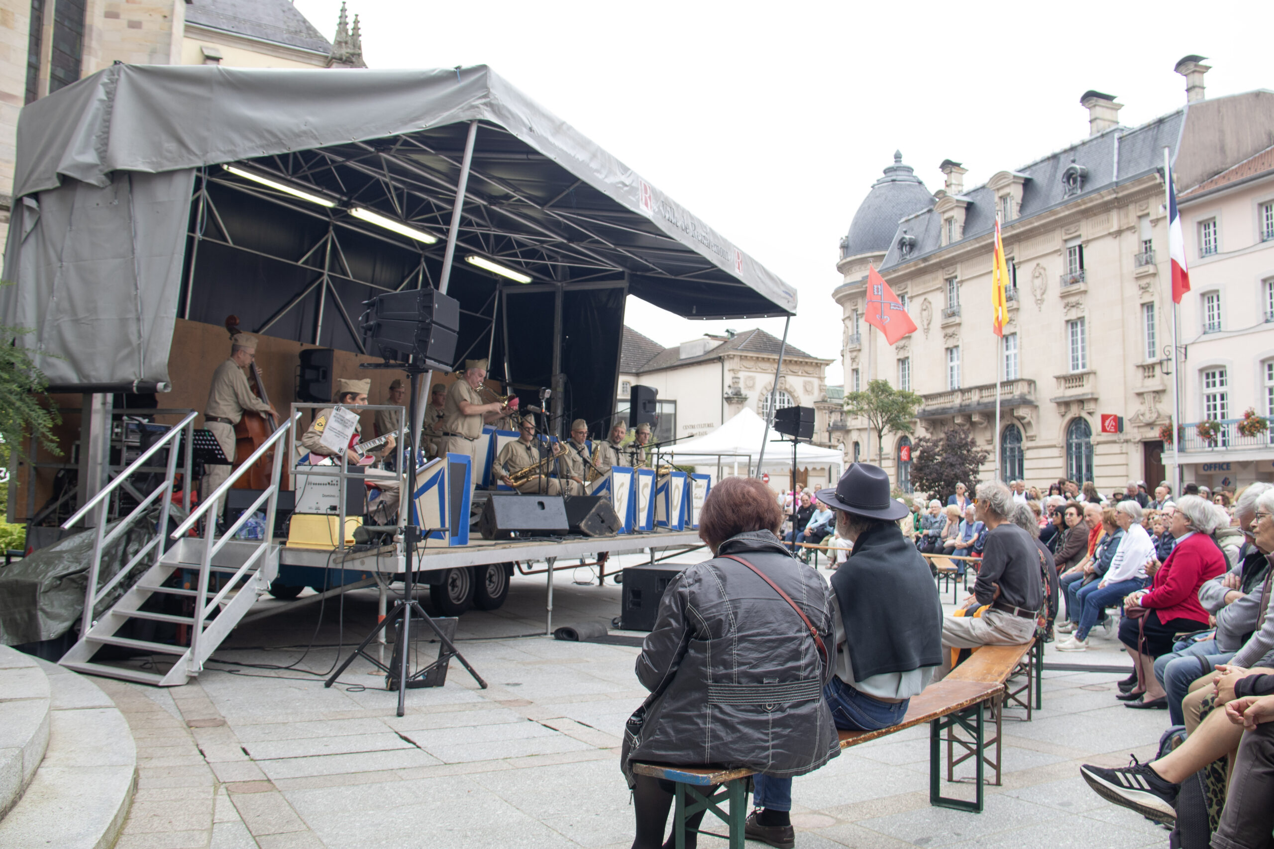 Pour perpétuer la joie de la Libération, la ville a ensuite offert un concert devant l’Hôtel de Ville. Des airs de jazz et de swing des années 40 ont animé Remiremont grâce à la Glenn’s Swing Orchestra.