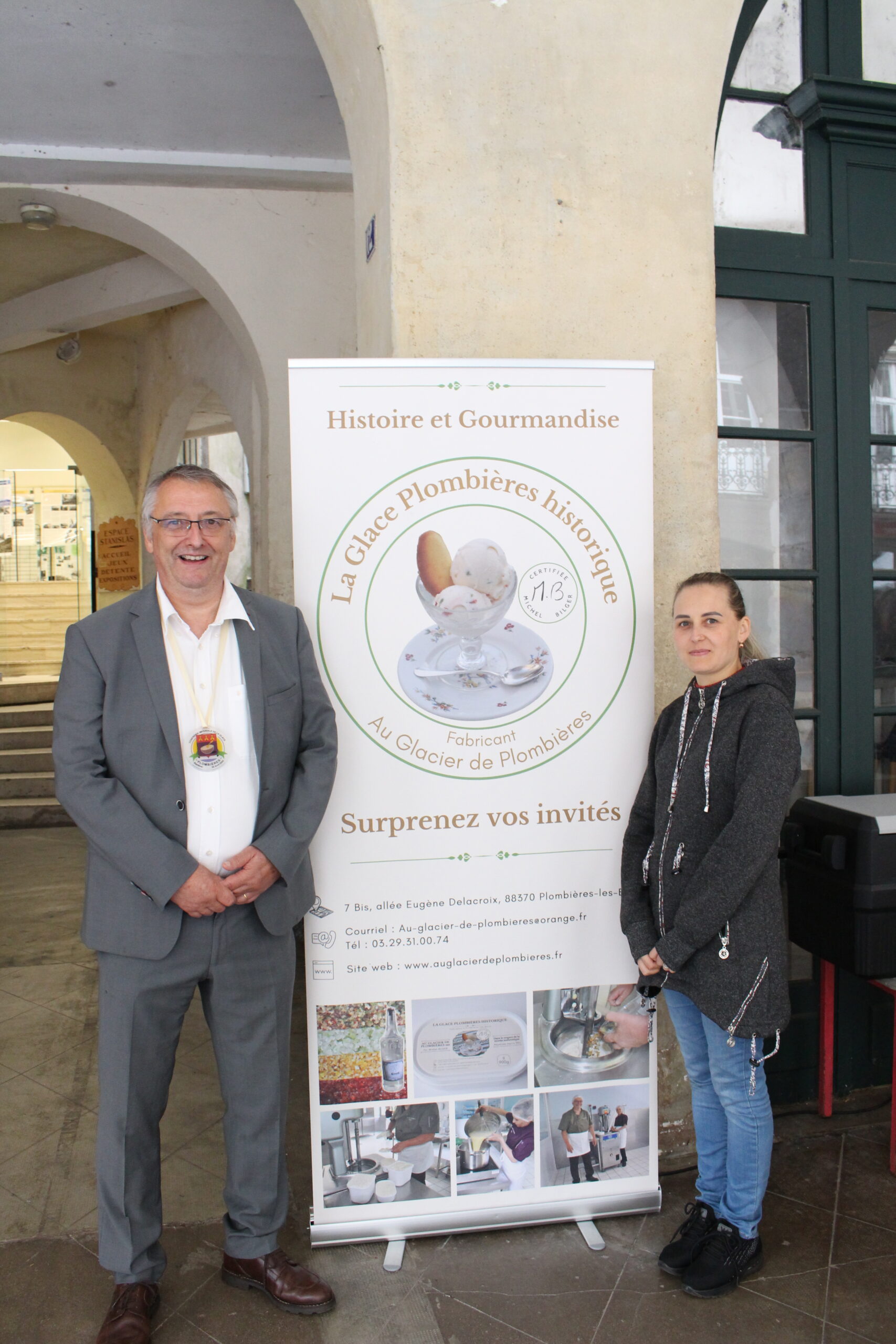 Enfin, pause gourmande sous les arcades avec une petite dégustation de la fameuse Glace de Plombières. La Société d’art et d’histoire locale nous plonge dans l’histoire de cette savoureuse glace. Même si l’origine peut sembler incertaine, ce qui est certain est que la fabrication artisanale de cette glace à Plombières est attestée sans discontinuer depuis 1882. Aujourd’hui, c’est la société Au glacier de Plombières où Michel Bilger, détenteur de la recette transmise par son grand-père, continue à fabriquer cette glace, épaulé désormais par Olga Goncharenko.