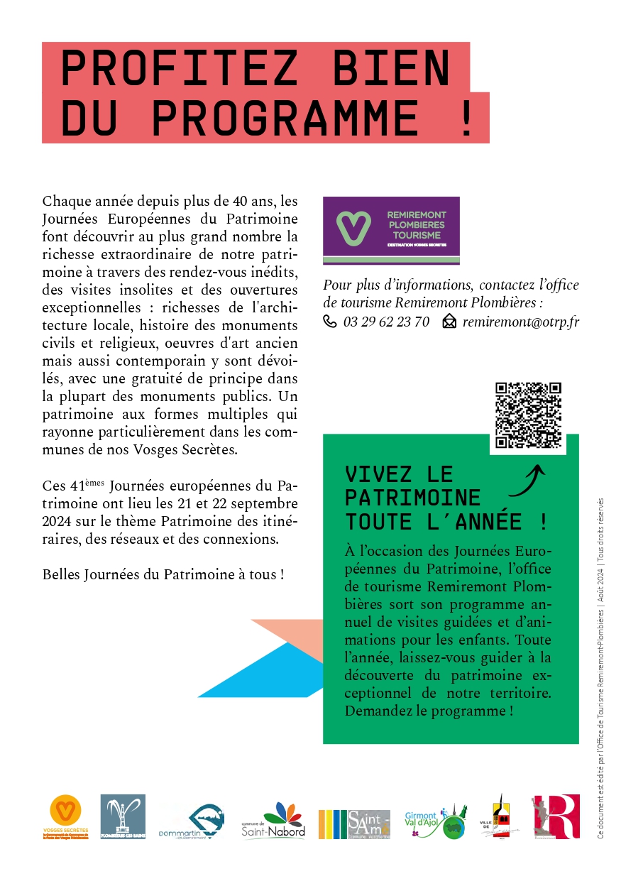 Le programme des journées Européennes du patrimoine des Vosges Secrètes