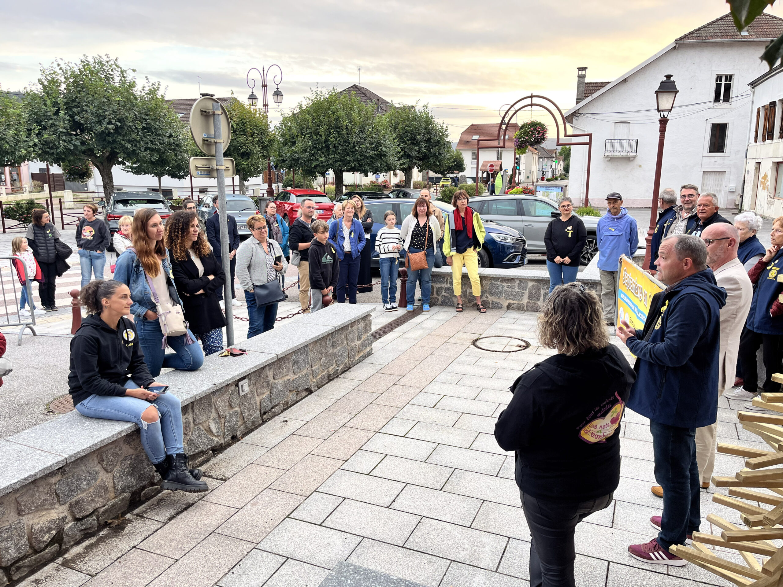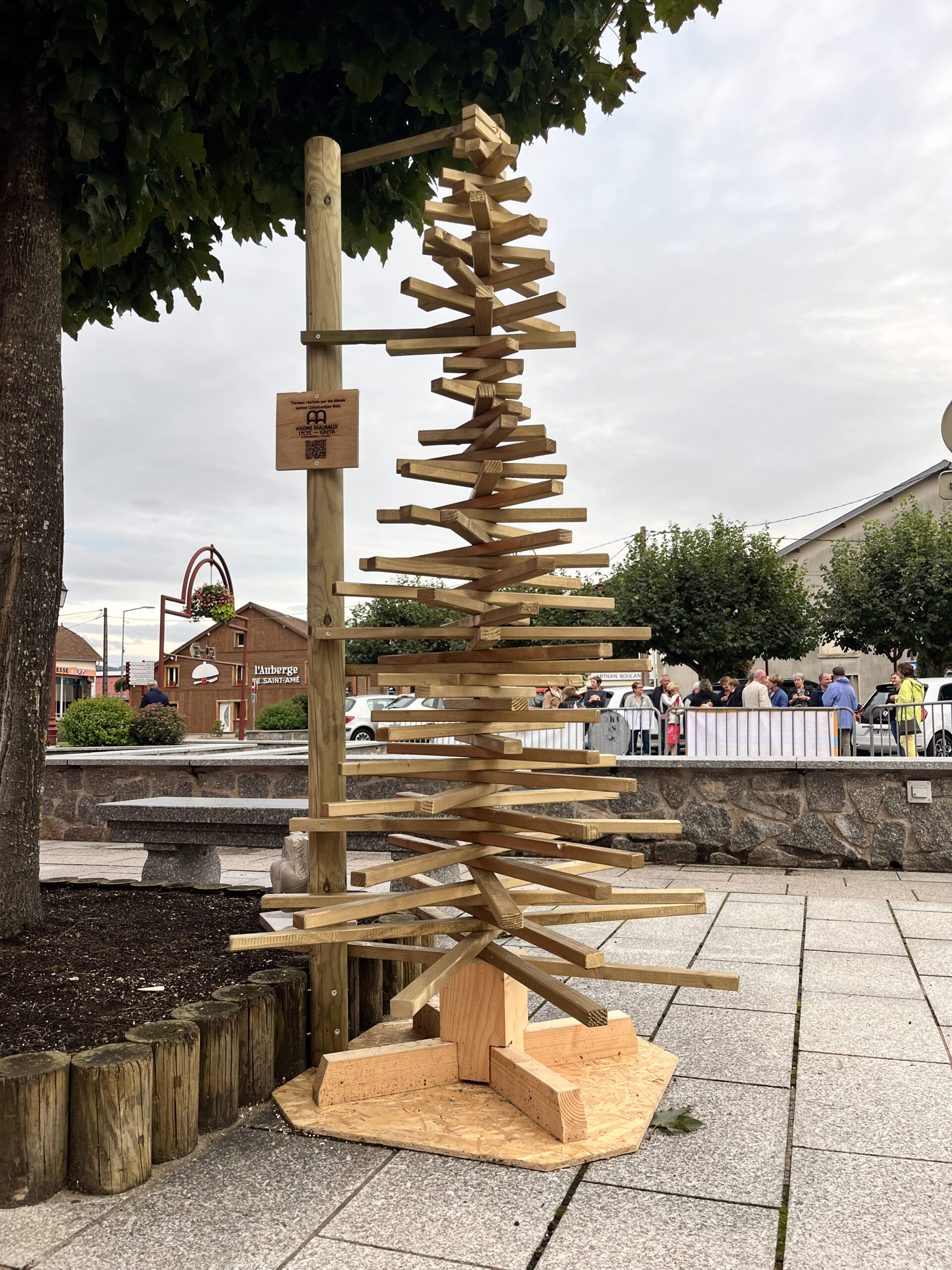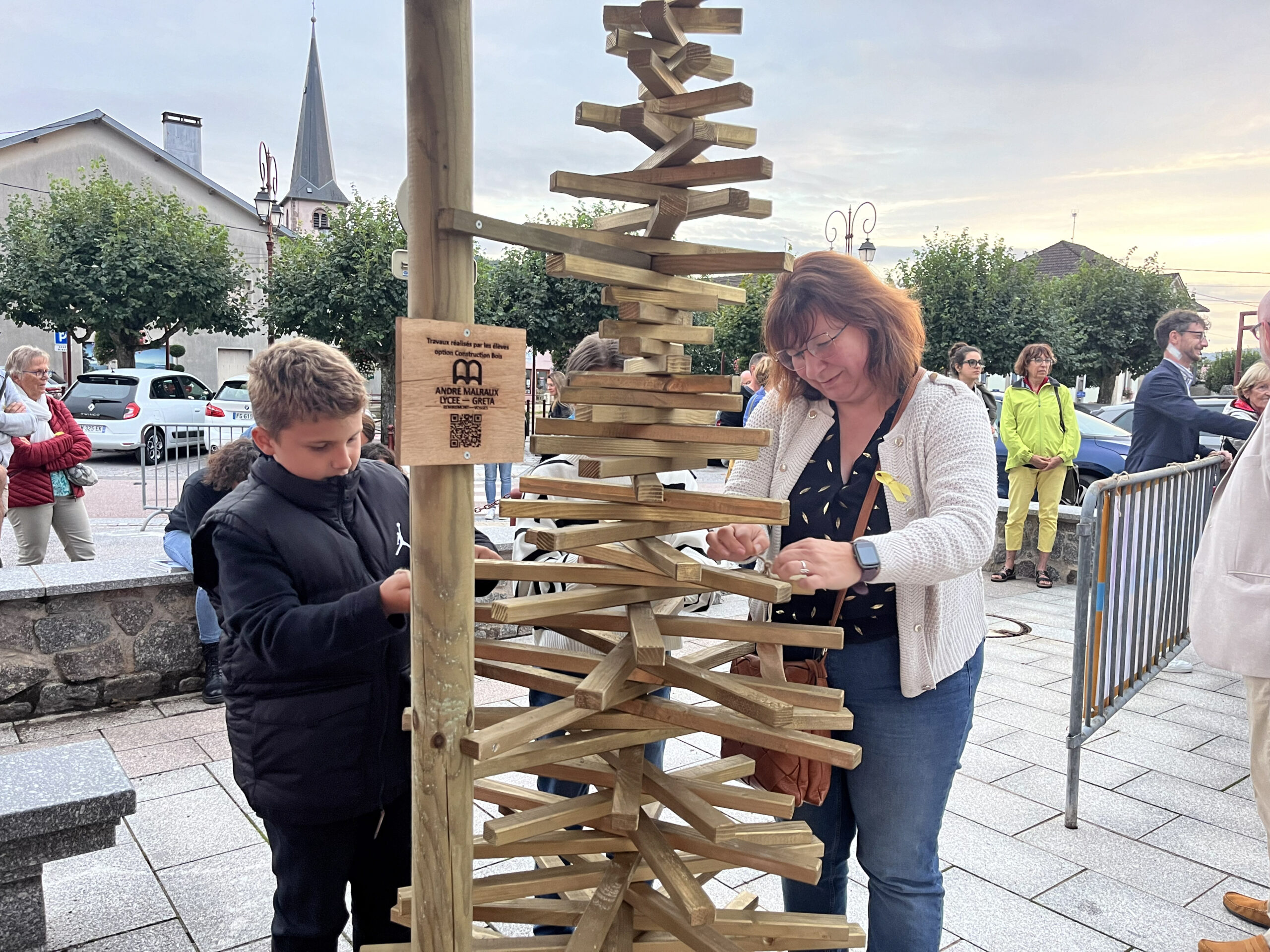 Le maire de Saint-Amé Arnaud Jeannot, Fanny Grandemange, présidente de l’association Une Note de Bonheur, ainsi que Jean-Charles Tisserand, président du Rotary de Remiremont et ses membres, mais également des élus locaux se sont rassemblés ce mardi pour inaugurer l’arbre doré créé par les élèves de la filière Bois du lycée André Malraux de Remiremont.