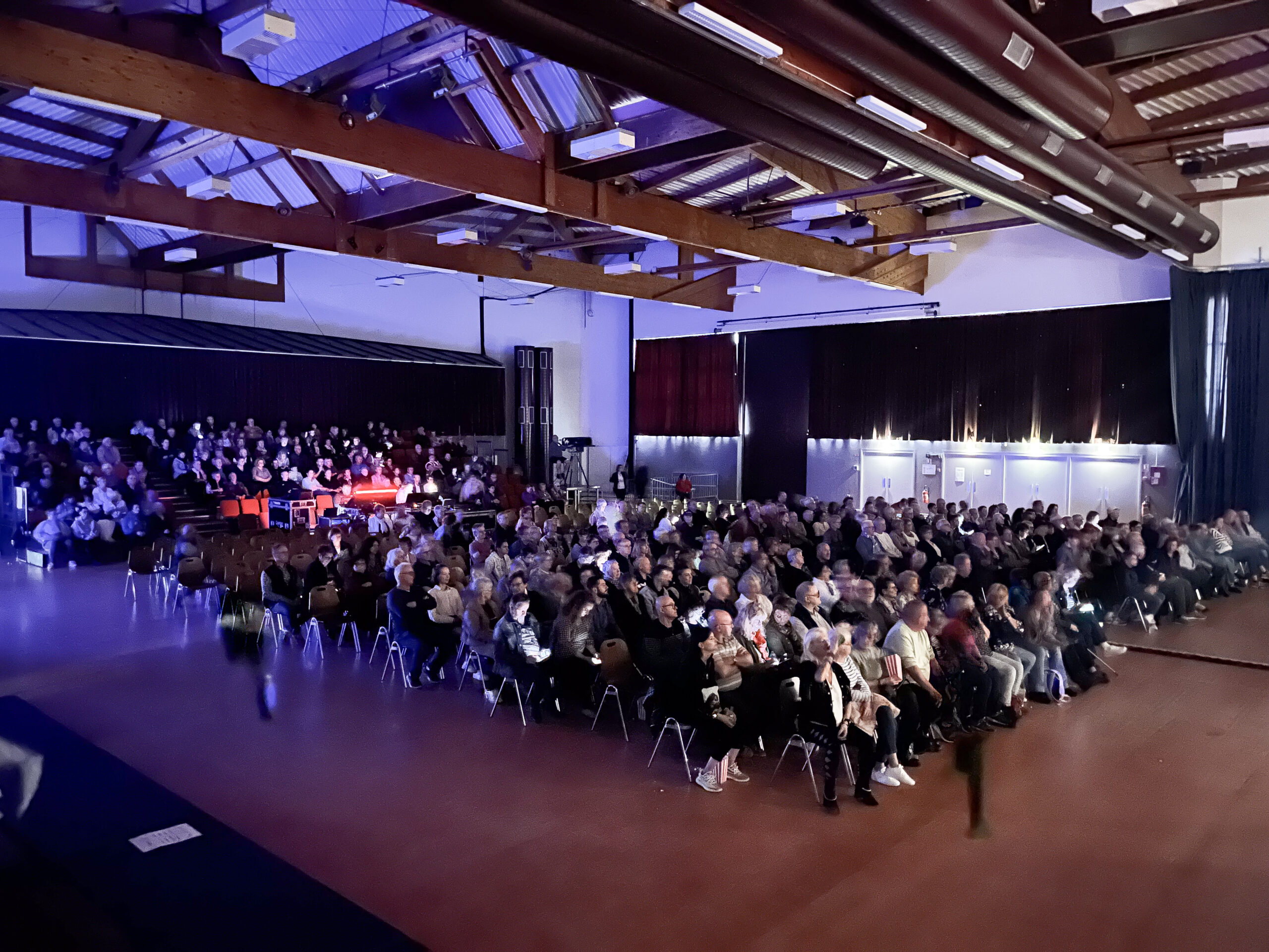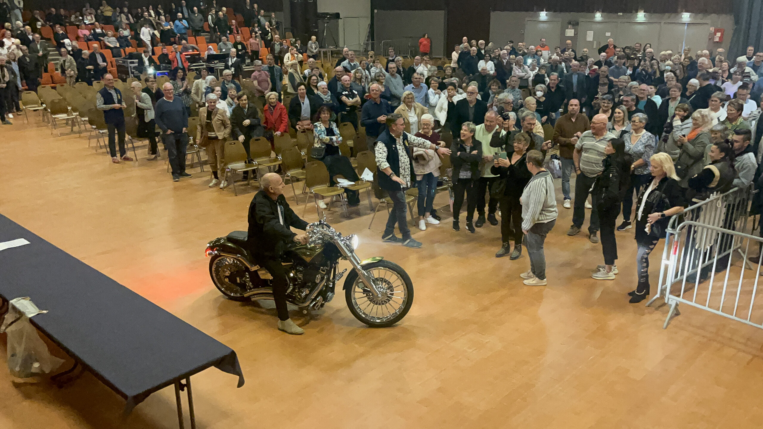 Le concert Tribute Johnny Hallyday a réservé de belles surprises ce dimanche 20 octobre au Palais des Congrès de Remiremont. Entre guitare et moto de Johnny, mais aussi show exceptionnel avec des changements de tenues et la présence du sosie de Johnny, le public est sorti le sourire aux lèvres du concert. L’évènement, organisé par le Rotary Club de Remiremont et soutenu par Alain Lazzarini qui a fait venir à plusieurs reprises L’Idole des Jeunes dans la cité des chanoinesses, a mis en scène une quinzaine d’artistes de la Compagnie Pericard : musiciens, chanteurs et danseurs. Les bénéfices de l’évènement visent à soutenir la recherche contre les cancers pédiatriques. Pour clôturer le spectacle en beauté, une Harley-Davidson a débarqué en trombe dans le Palais des Congrès à la surprise générale. Quant à la véritable moto de Johnny Hallyday, elle a été l’attraction photographique pendant l’entracte ! Visionnez notre vidéo pour revivre les moments forts du concert :