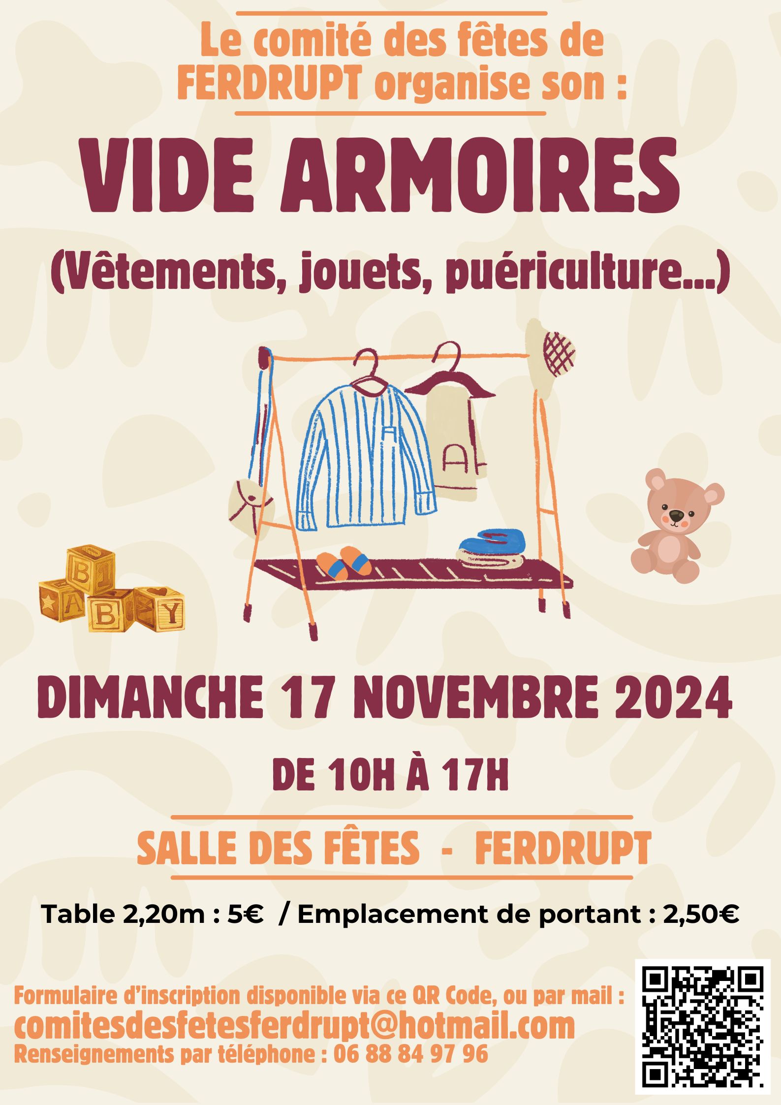Le comité des fêtes de Ferdupt organise le 17 novembre prochain un vide-armoires de 10 h à 17 h dans la salle des fêtes de la commune. Vous trouverez le bulletin d’inscription ci-dessous :