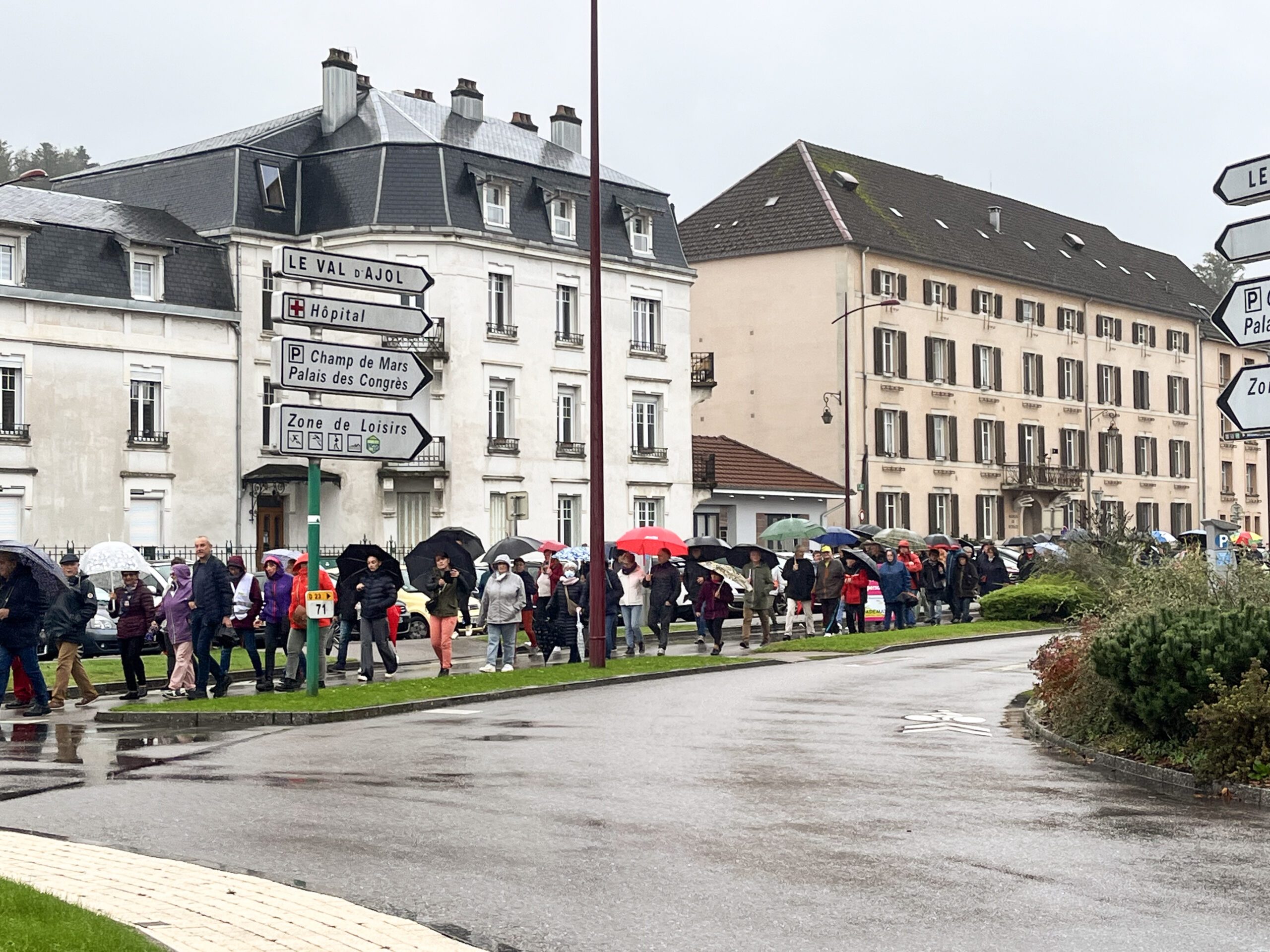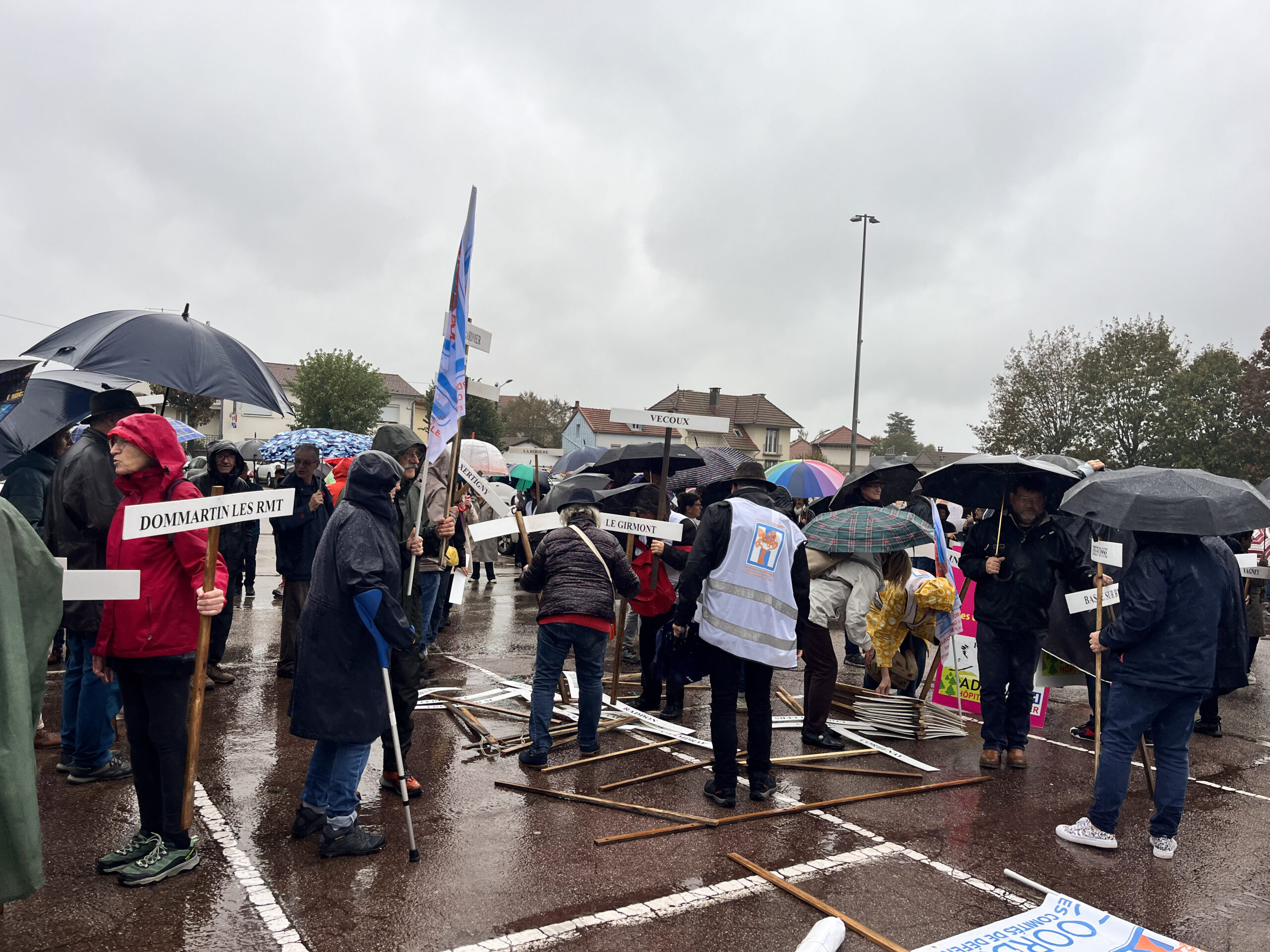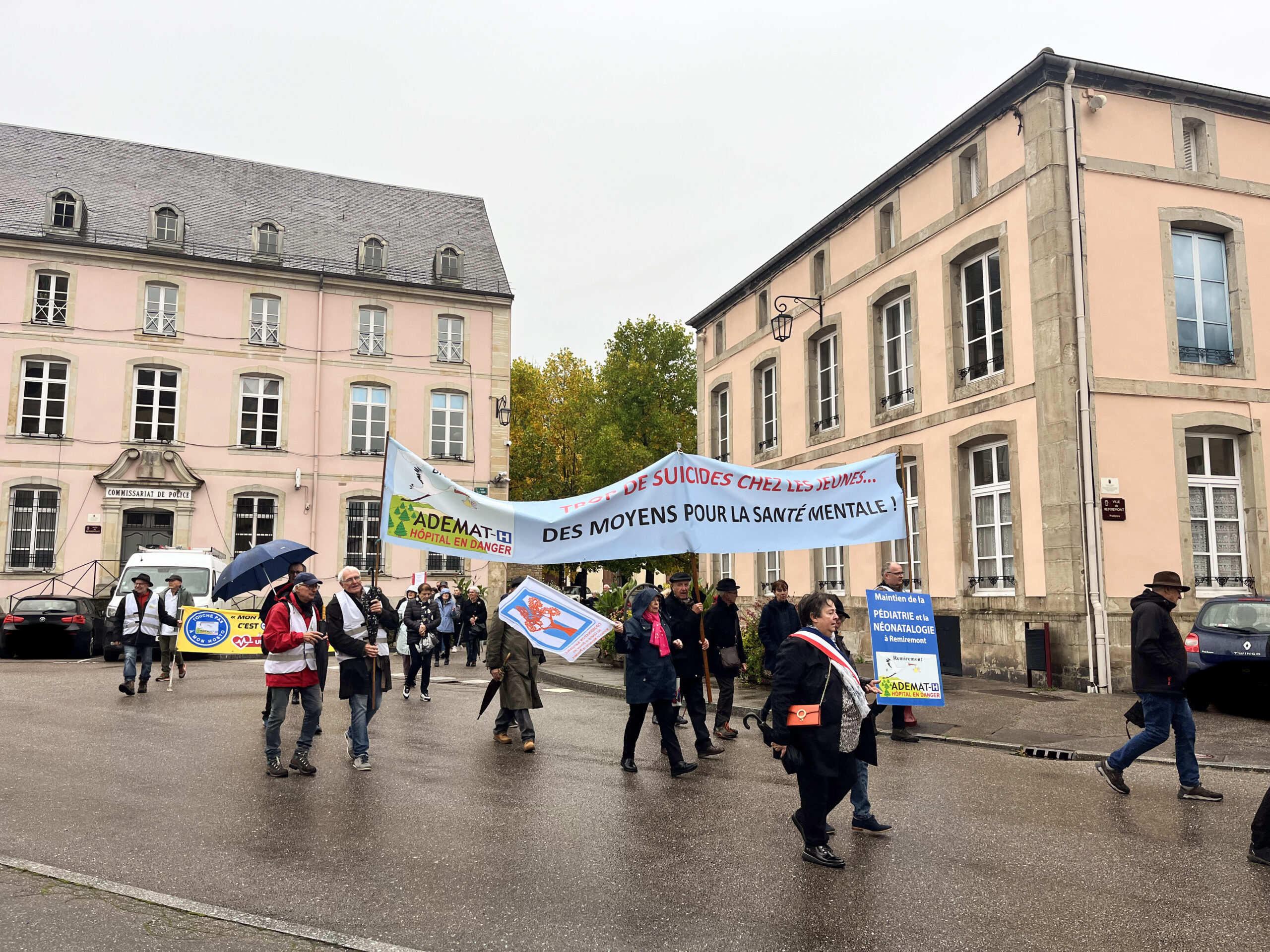 Ce dimanche 13 octobre, environ 600 personnes ont répondu à l’appel de l’Ademat-H pour manifester contre le projet médico-soignant qui menace particulièrement l’hôpital de Remiremont. Parti du Champ de Mars, le cortège s’est rendu aux abords du centre hospitalier, où des élus de plusieurs communes ont planté des pancartes symboliques. La manifestation s’est ensuite poursuivie dans la rue Charles de Gaulle, pour se conclure devant l’Hôtel de Ville, où plusieurs interventions ont eu lieu.