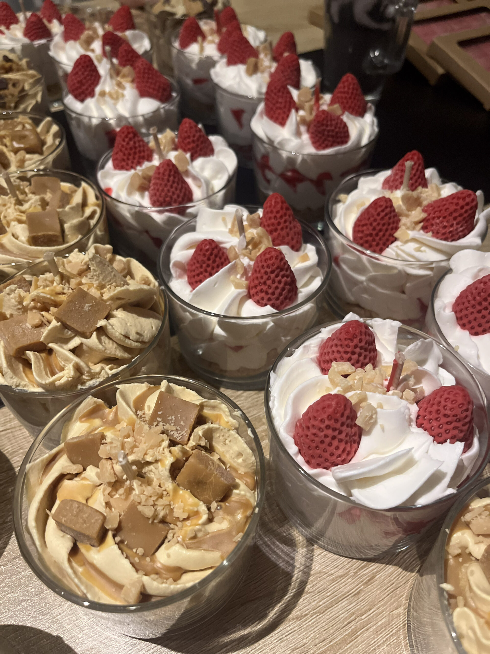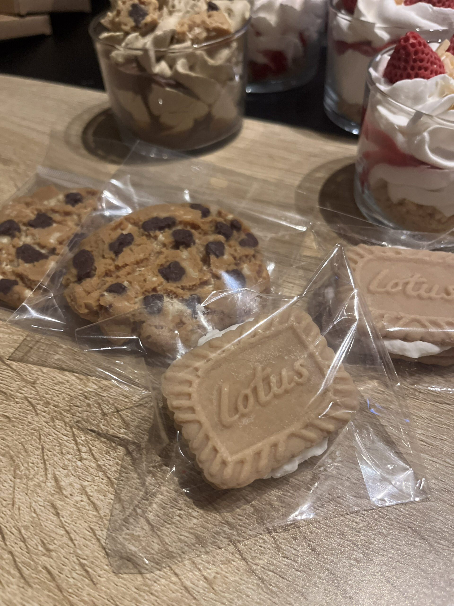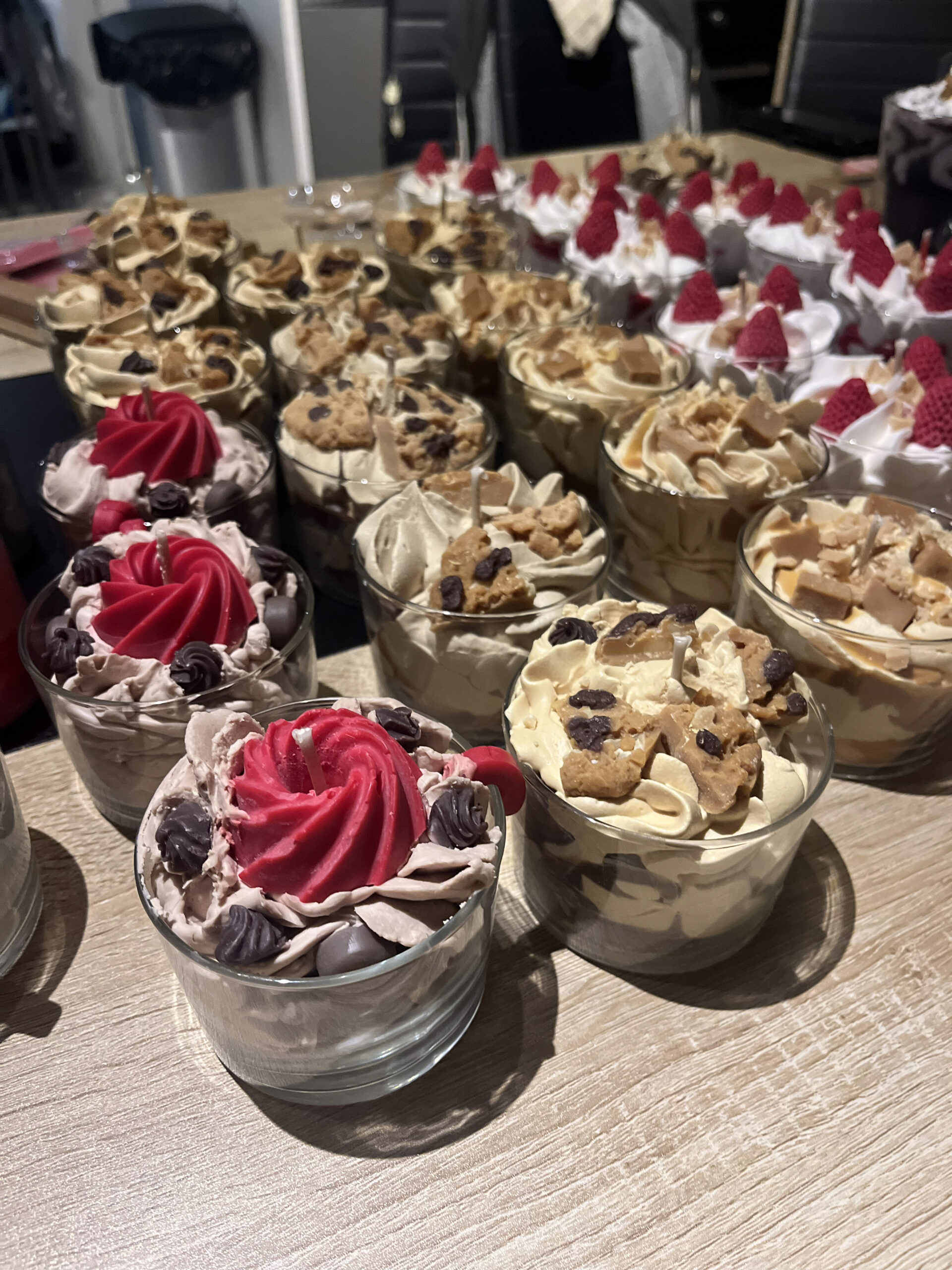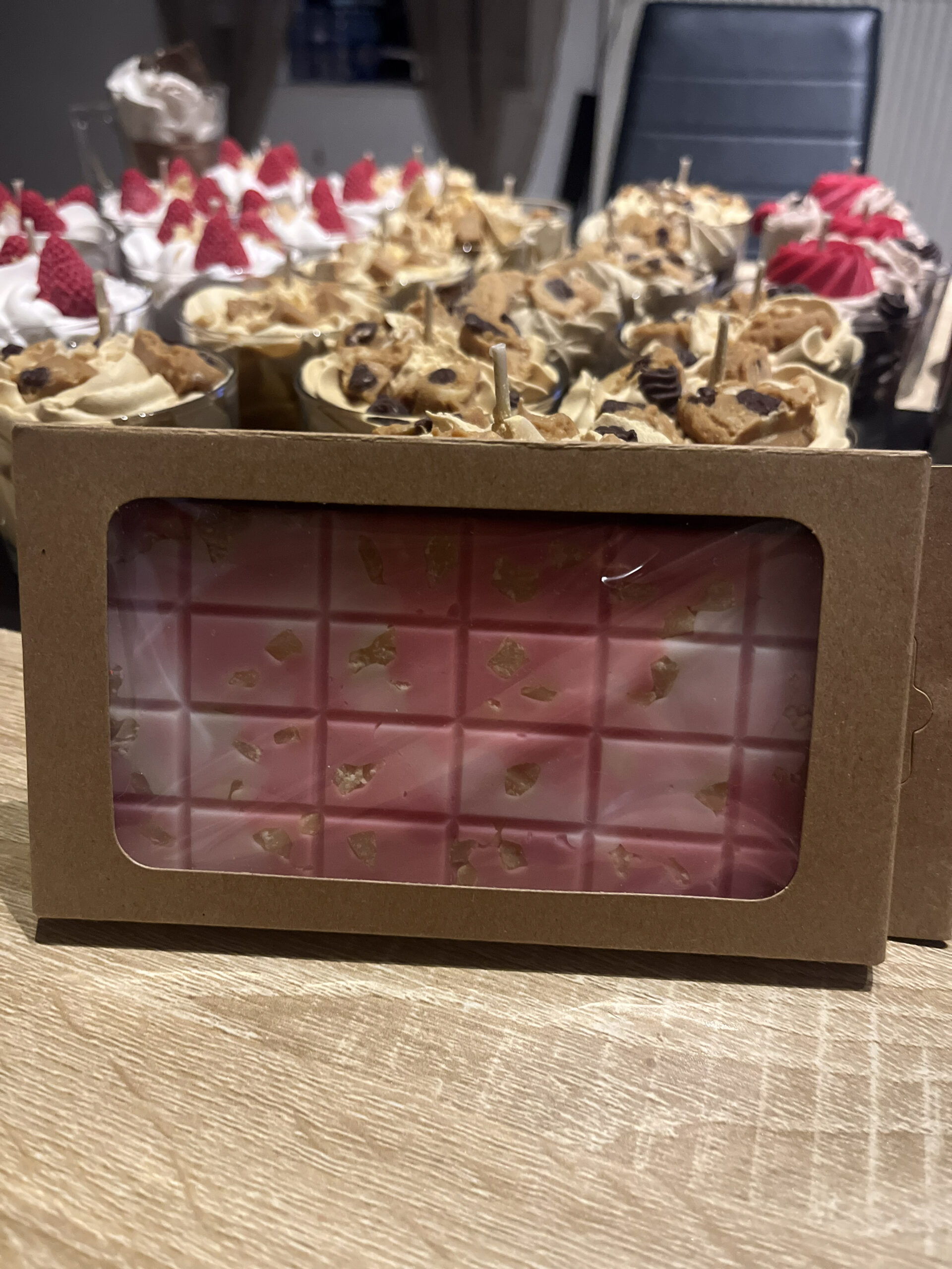 Ses bougies se distinguent par leur apparence unique : chantilly, mini-fraises, gâteaux… elles ressemblent à de véritables desserts ! De même, les fondants parfumés adoptent des formes appétissantes, comme des cookies, des tablettes de chocolat ou des pâtisseries.