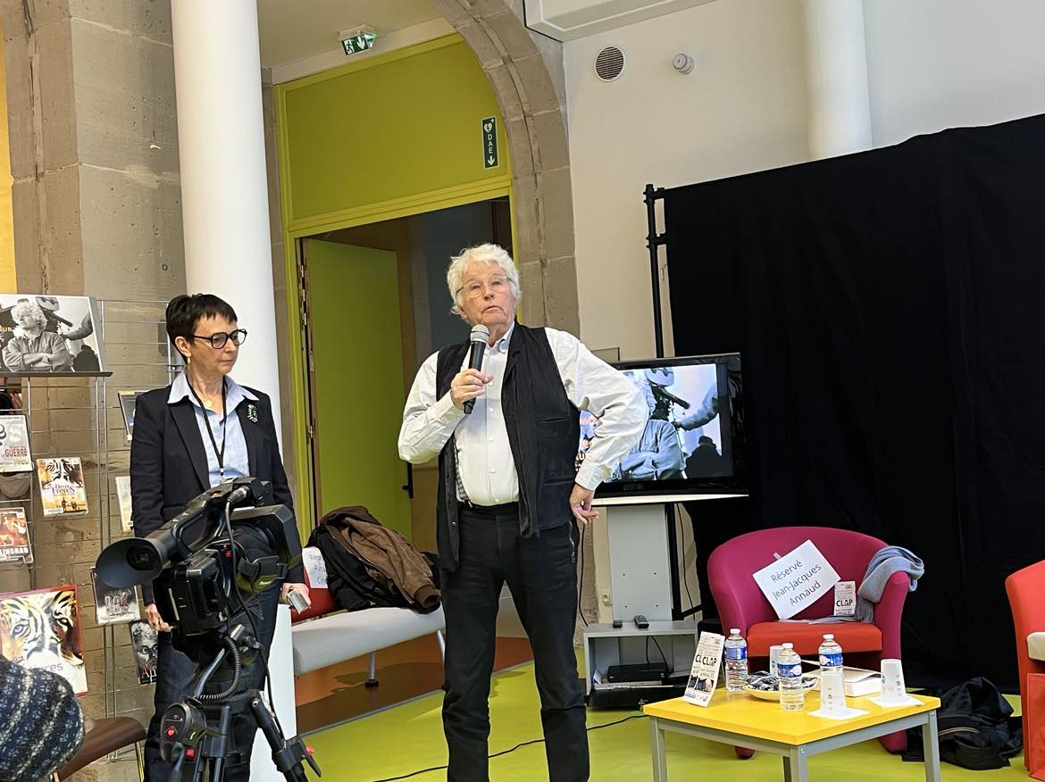 Ce vendredi 22 novembre, le réalisateur emblématique Jean-Jacques Annaud (L’Ours, Stalingrad, L’Amant) a partagé son expérience et ses anecdotes lors d’une masterclass exceptionnelle à la médiathèque intercommunale de Remiremont, dans le cadre du festival Clap. L’événement, ouvert au public et aux élèves de la section Cinéma du lycée Jeanne d’Arc, a offert un moment unique d’échange avec le réalisateur, qui n’a pas hésité à dévoiler les coulisses de sa carrière.