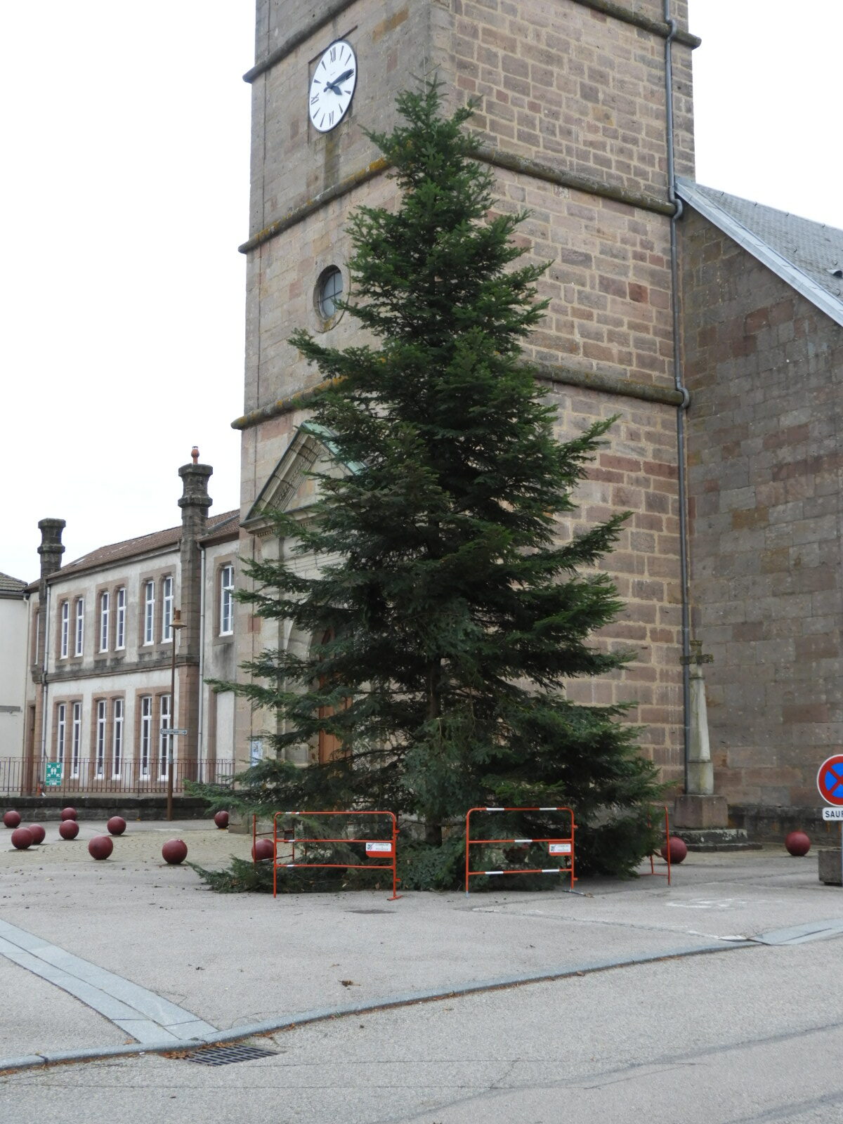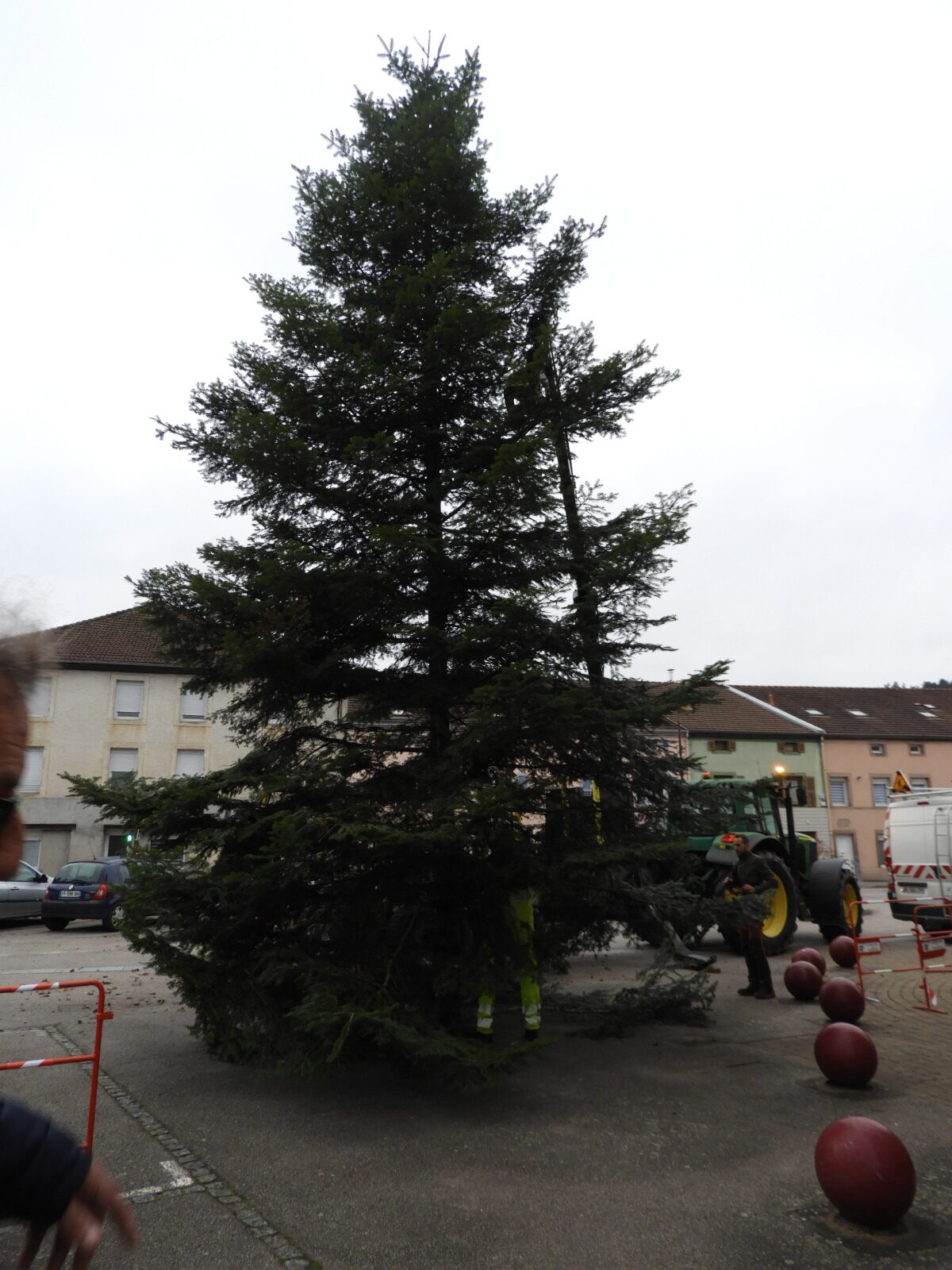 Le Sapin de Noël de Pouxeux a été coupé et installé