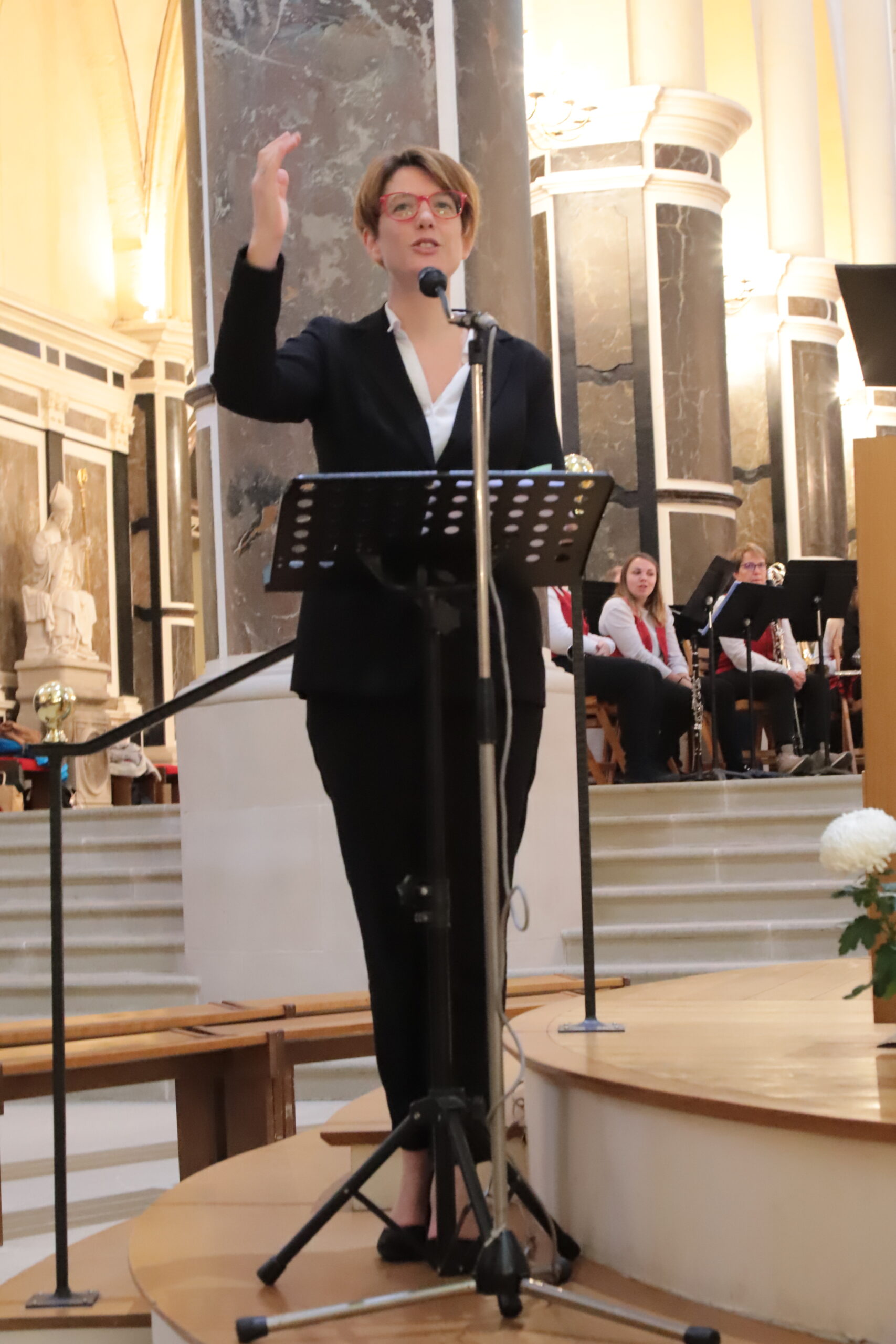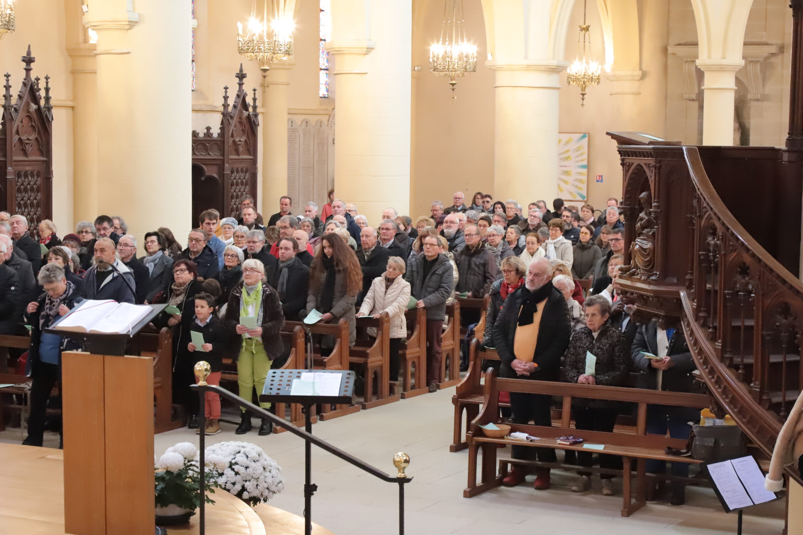 La partie purement liturgique revenait à la chantre Hélène DA SILVA LEJAL, dirigeant aussi l’ensemble vocal Éclats de Voix, et l’organiste Yvonnick Clément.