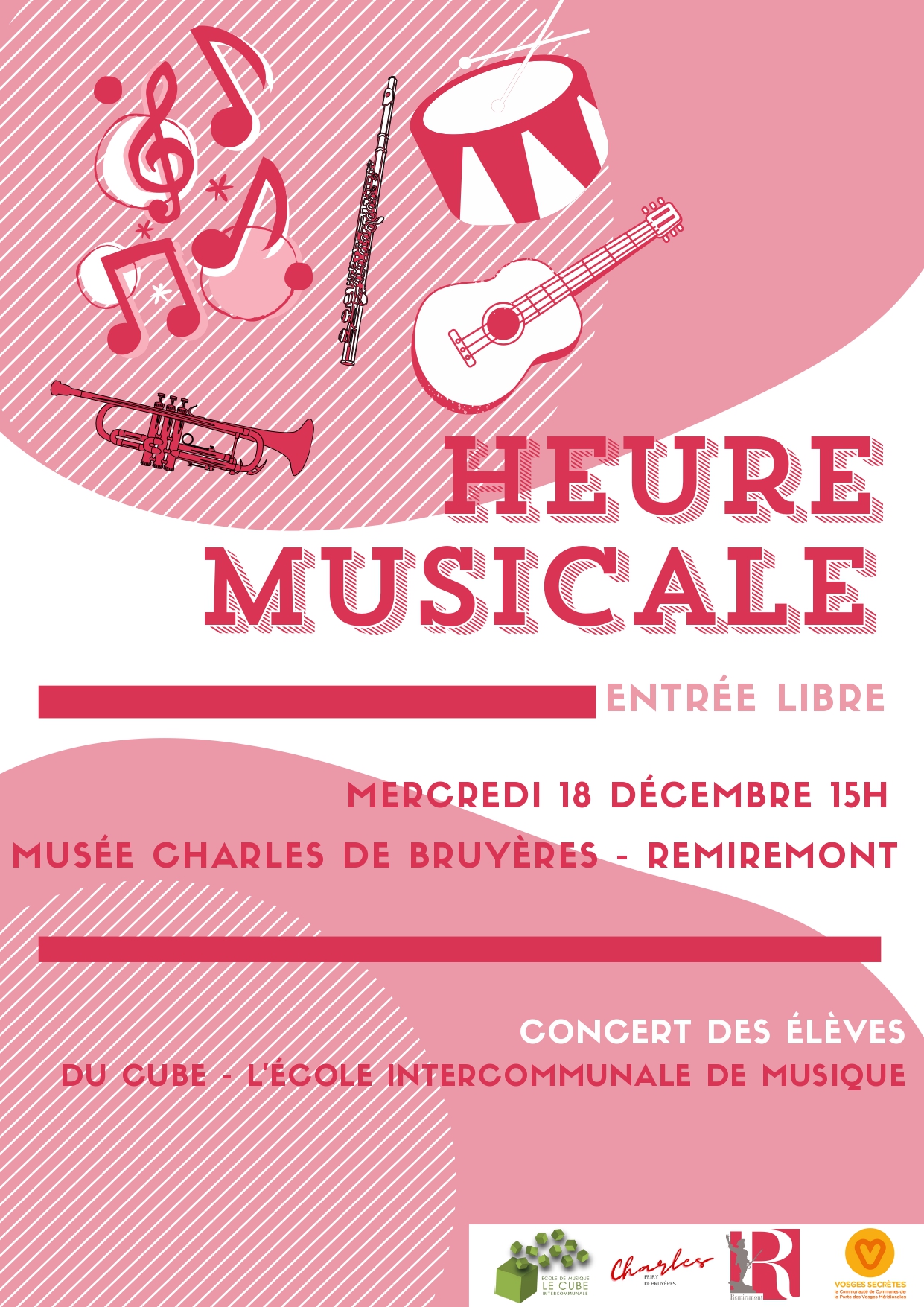 Entourés des élèves du Cube, deux ensembles partenaires de l’École Intercommunale de Musique Le Cube vous accueillent à l’Abbatiale de Remiremont pour partager un moment convivial et musical, dans un lieu hors du commun à la sonorité unique.