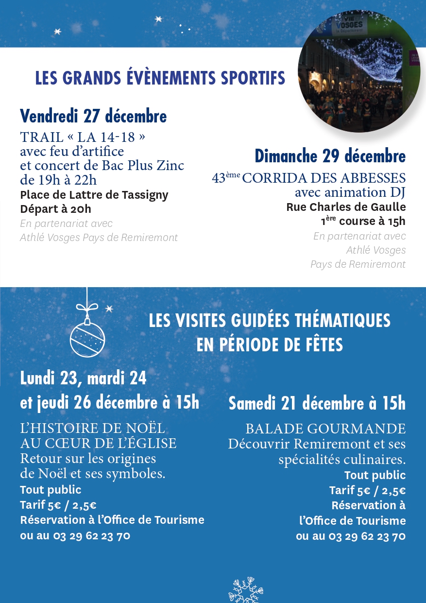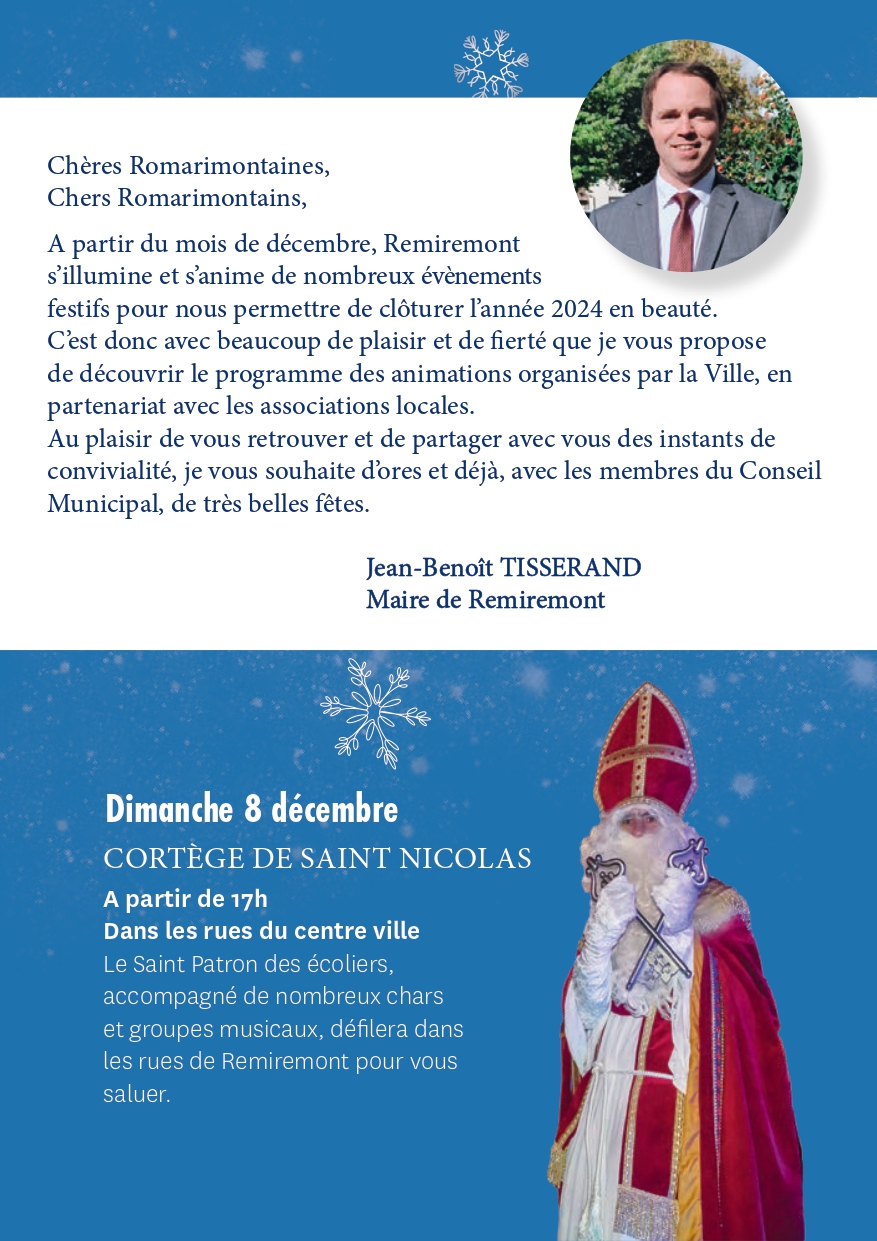 La ville de Remiremont et ses associations réservent un mois de décembre haut en couleurs avec un programme d’animations varié pour ravir petits et grands.