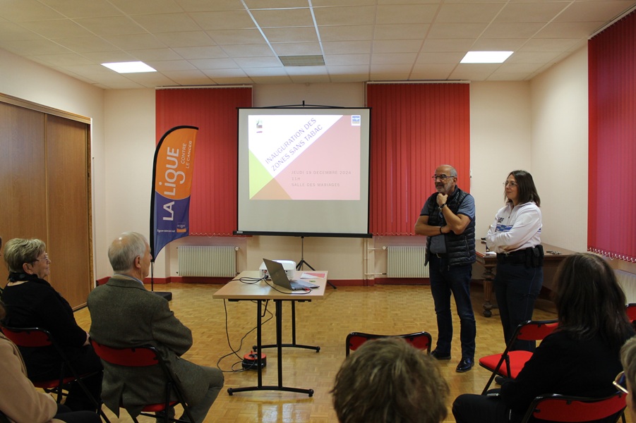 Ce jeudi 19 décembre 2024 a eu lieu l’inauguration des espaces sans tabac par la signature d’une convention entre le comité départemental de la Ligue contre le cancer et la collectivité.
