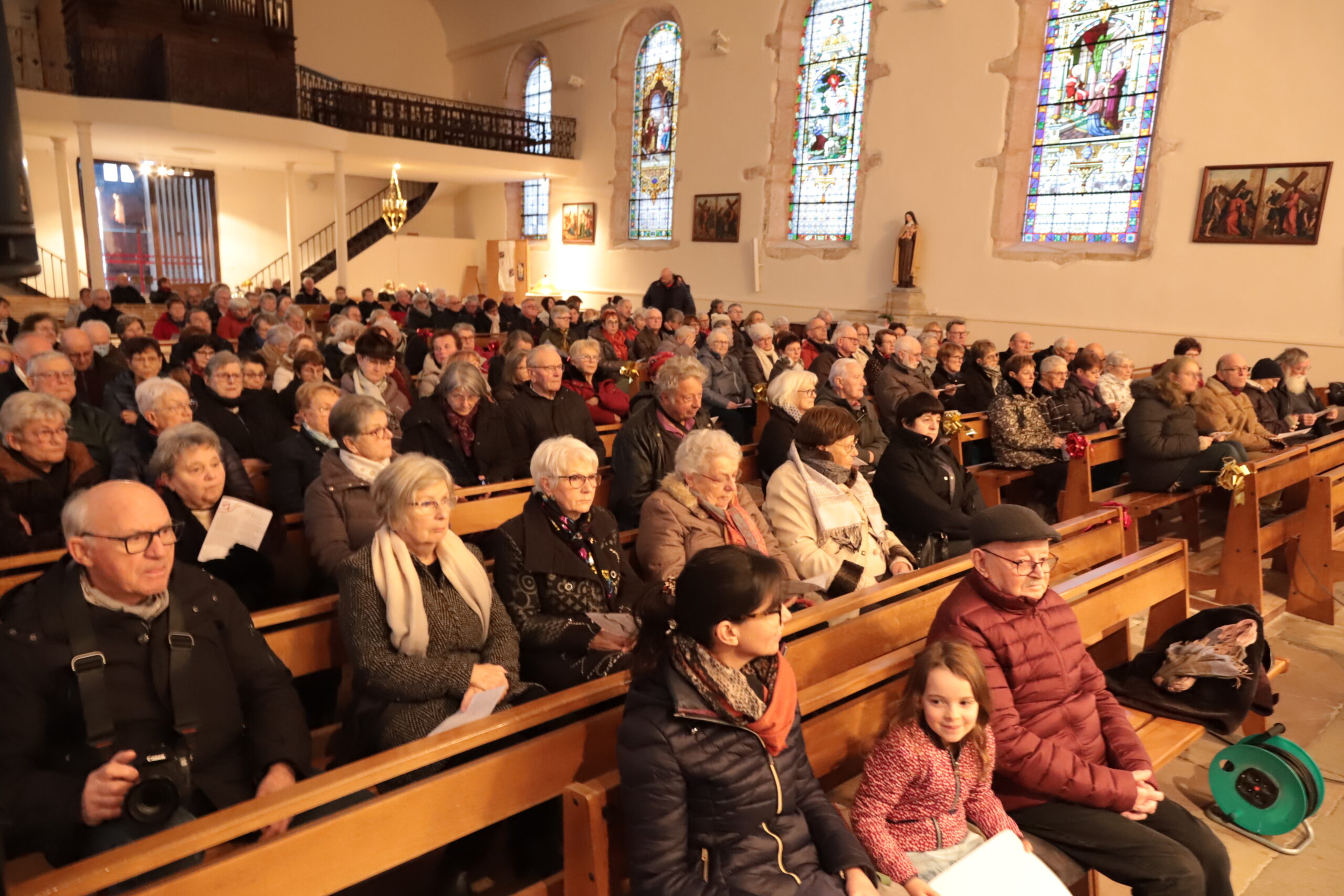 Sous la direction de Jean-Michel Géhin, près d’une trentaine de choristes ont interprété un répertoire de chansons françaises et de chants de Noël dans une église quasiment pleine. Le public s’est laissé transporter, avec douceur et un brin de nostalgie, des lumières de Noël à celles de Paris. De Françoise Hardy à Mathieu Chédid en passant par Tri Yann, Cabrel, Dutronc ou encore Jacques Brel, un florilège de chansons a régalé son public.