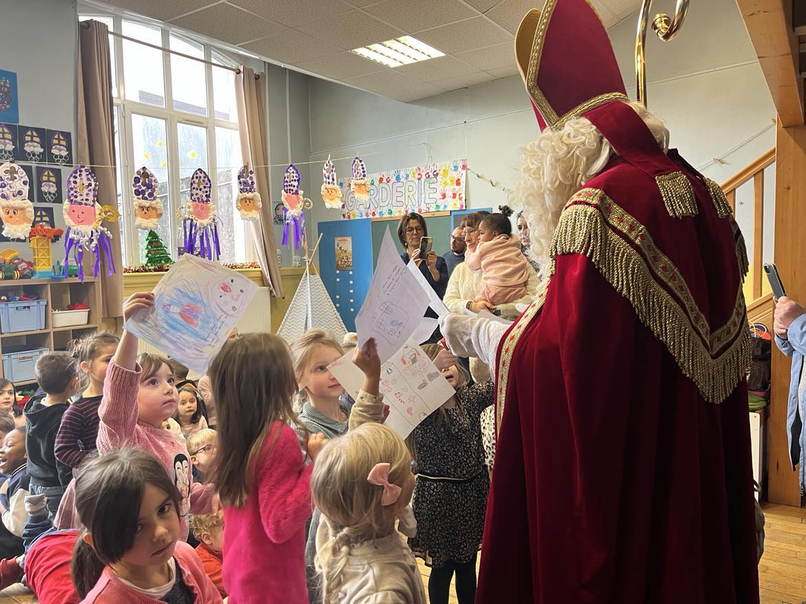 Mais Saint-Nicolas n’est pas venu les mains vides : chaque enfant a reçu un ballotin de bonbons, de papillotes, de clémentines et de brioches ! Les sachets étaient accompagnés d’un petit mot du patron des écoliers, écrit sur le dessin du grand gagnant du concours « Dessine-moi la Saint-Nicolas » lancé par la municipalité.