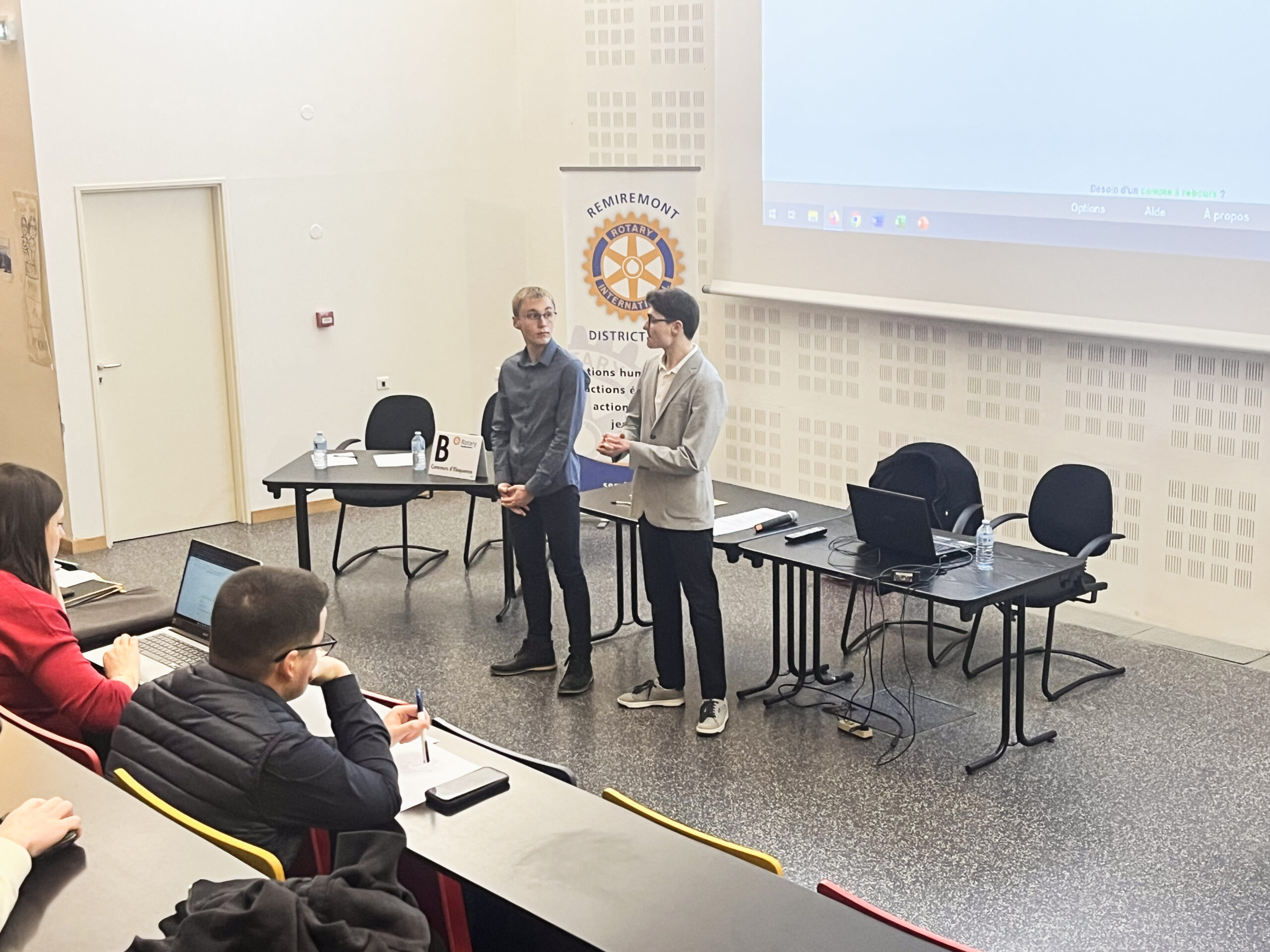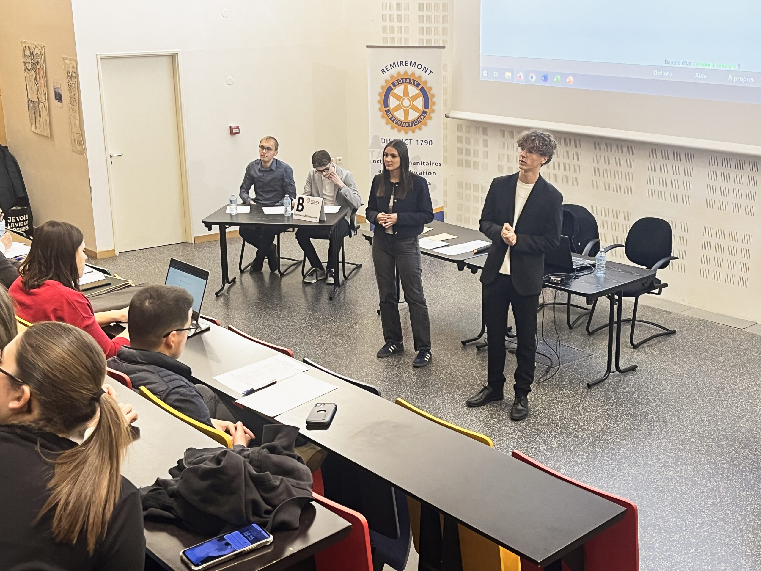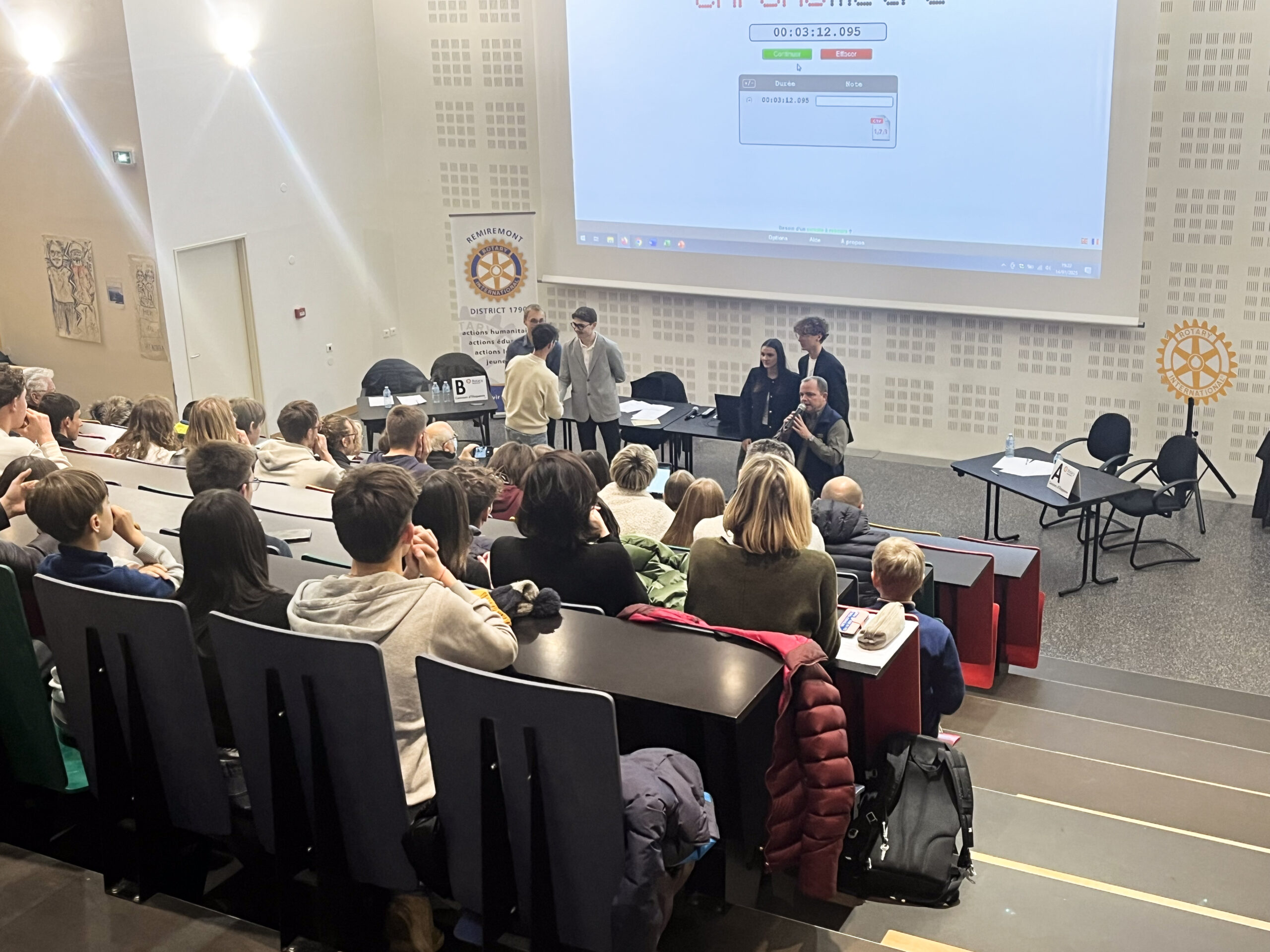 Ce mardi 14 janvier, le Rotary Club a organisé une nouvelle joute de son concours d’éloquence, réunissant des binômes des lycées André Malraux et Jeanne d’Arc dans une confrontation oratoire riche en arguments et en créativité. Devant un public attentif et un jury composé de Rotariens et de non-Rotariens, les jeunes talents ont fait preuve d’une éloquence remarquable.