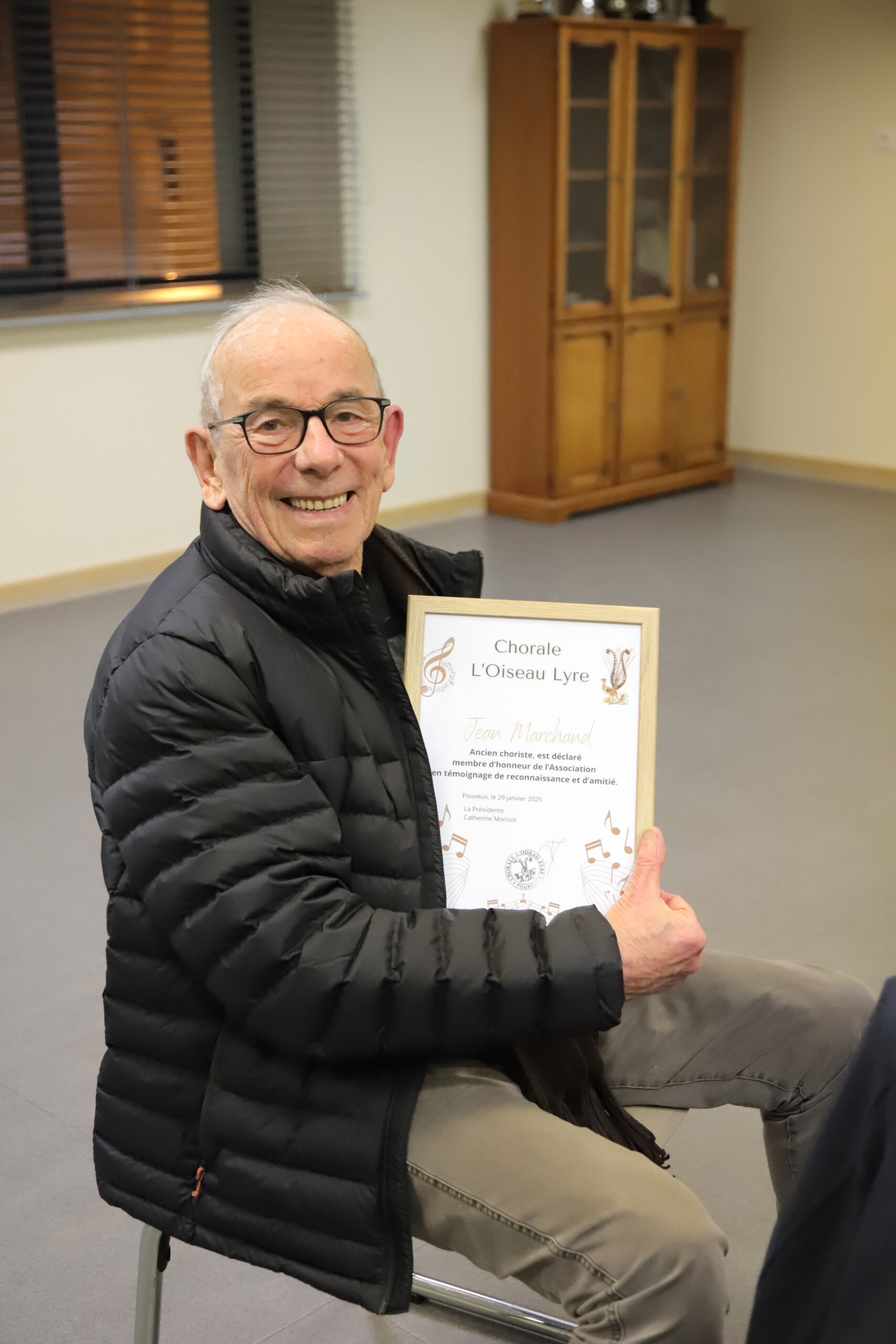 Avant que l’ensemble des participants ne se retrouve autour du verre de l’amitié et partage la galette des rois, le bureau a tenu à saluer l’engagement de trois choristes (Louisette, Hubert et Jean) qui quittent la chorale mais resteront en soutien dans l’association, par la remise du titre de membre d’honneur.