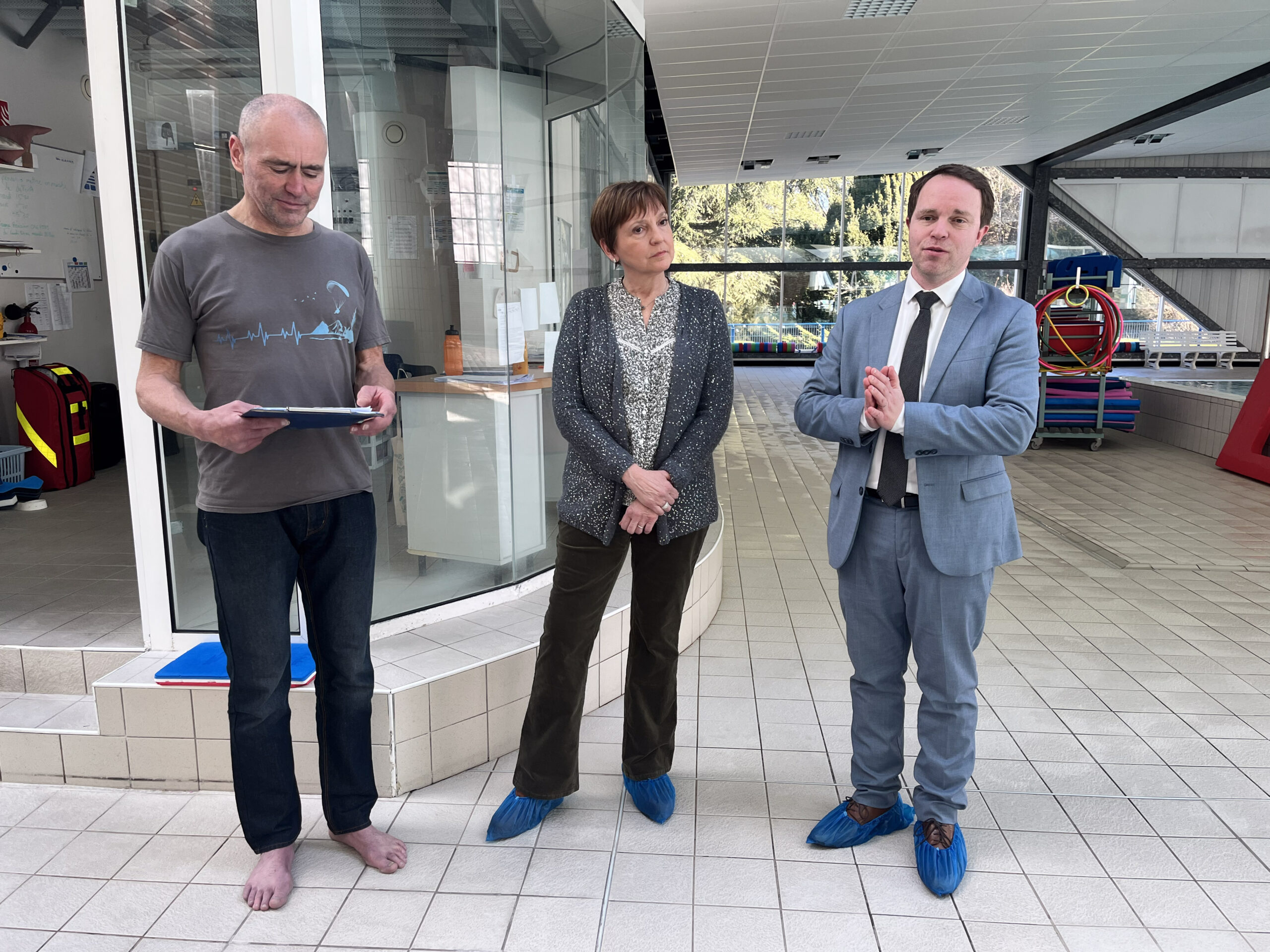 - Hervé Gavoille, responsable du centre aquatique, Catherine Louis, présidente de la CCPVM et Jean-Benoit Tisserand, maire de Remiremont