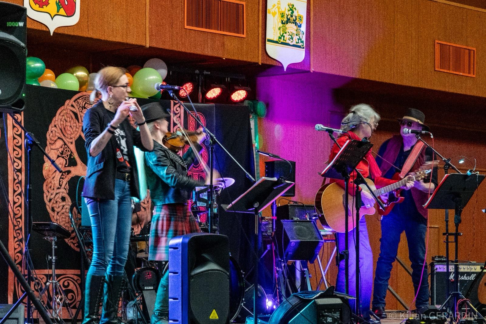 Le groupe Potofeu a assuré l’animation musicale avec un répertoire mêlant musique irlandaise aux accents rock, mais aussi quelques reprises américaines et françaises, pour le plus grand plaisir des spectateurs. L’ambiance festive a été renforcée par une initiation aux danses traditionnelles irlandaises, permettant aux participants de s’immerger pleinement dans l’esprit de la soirée.