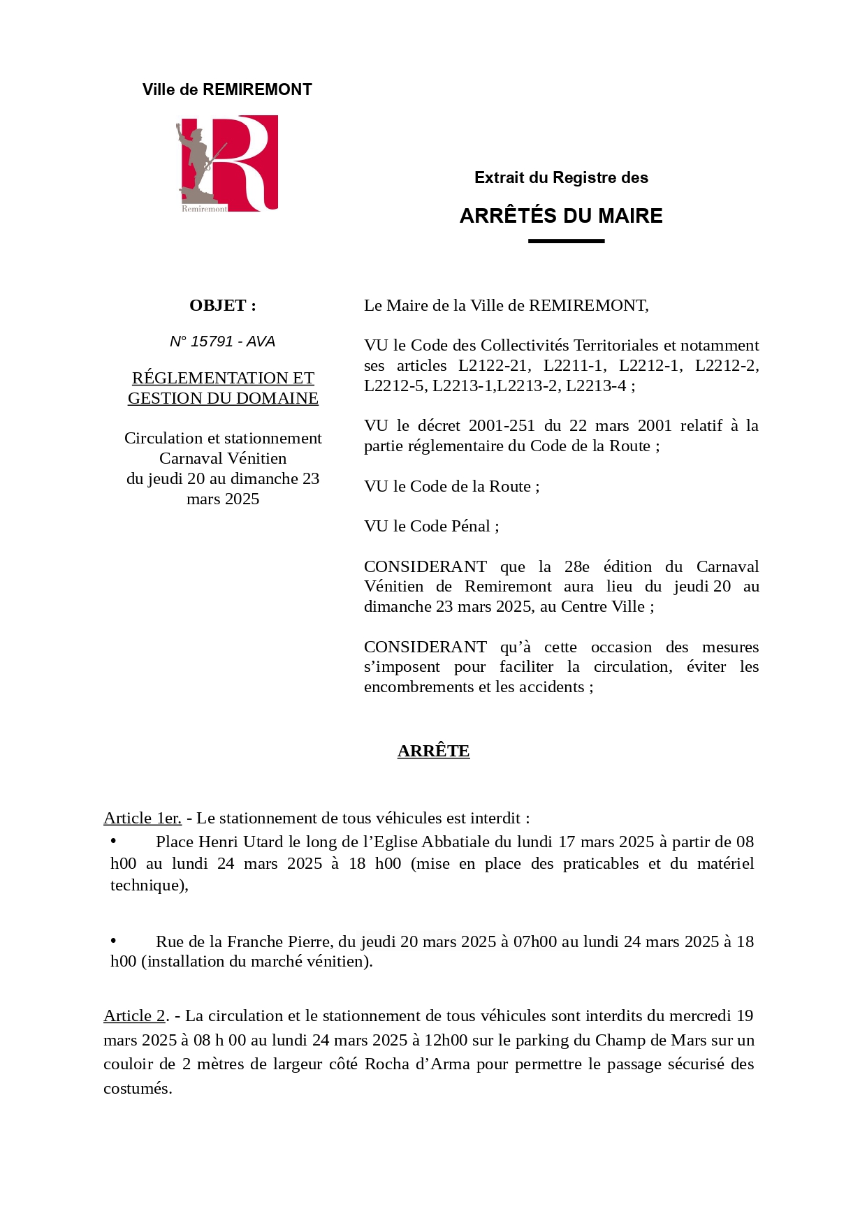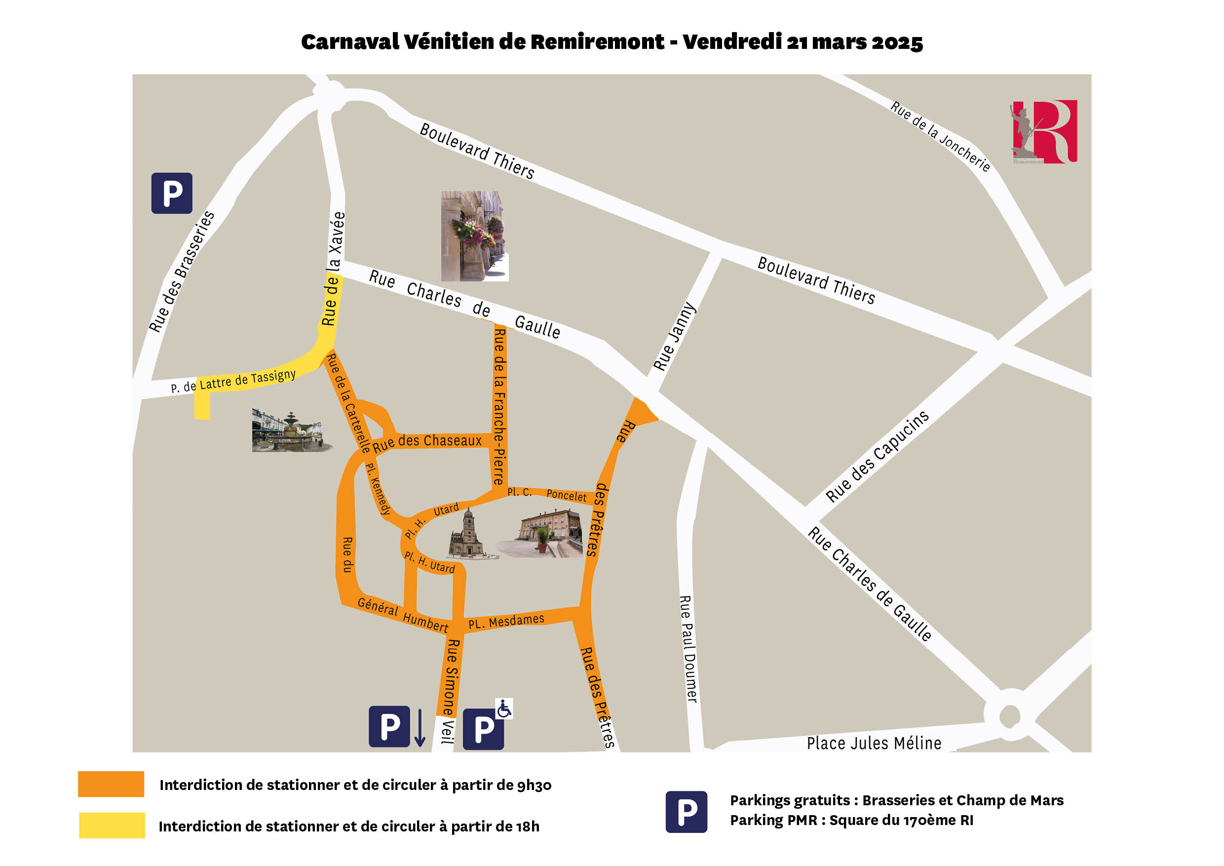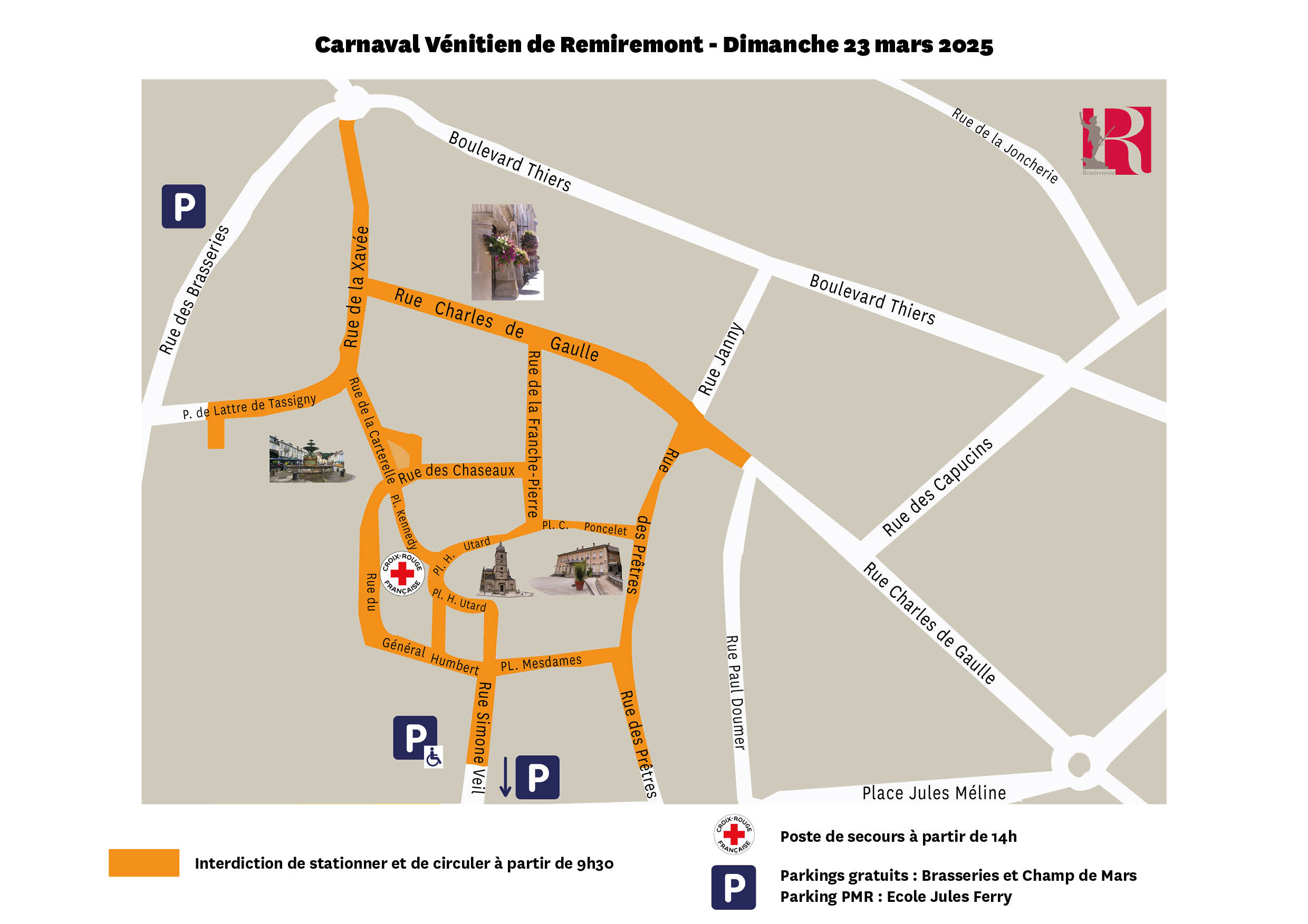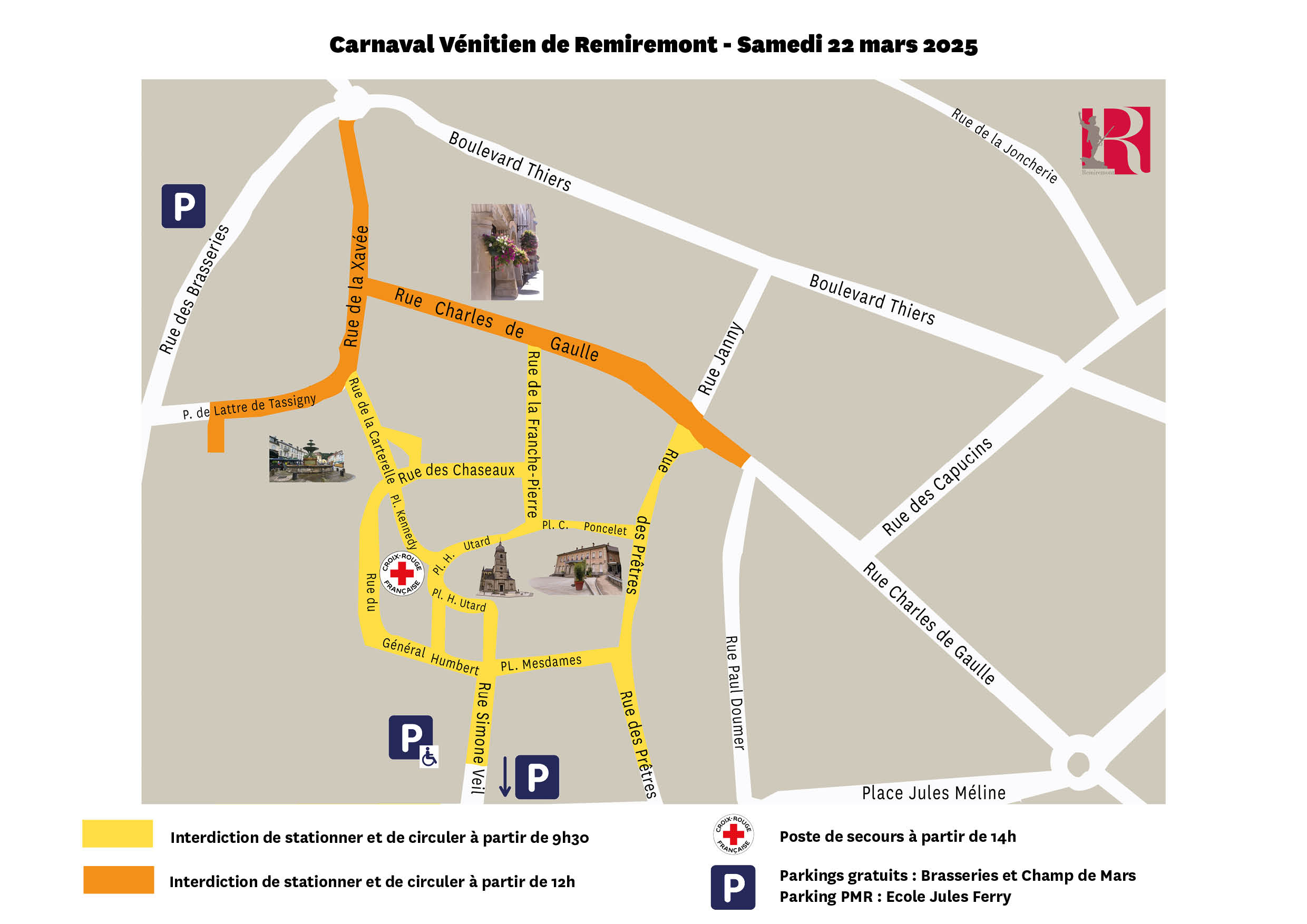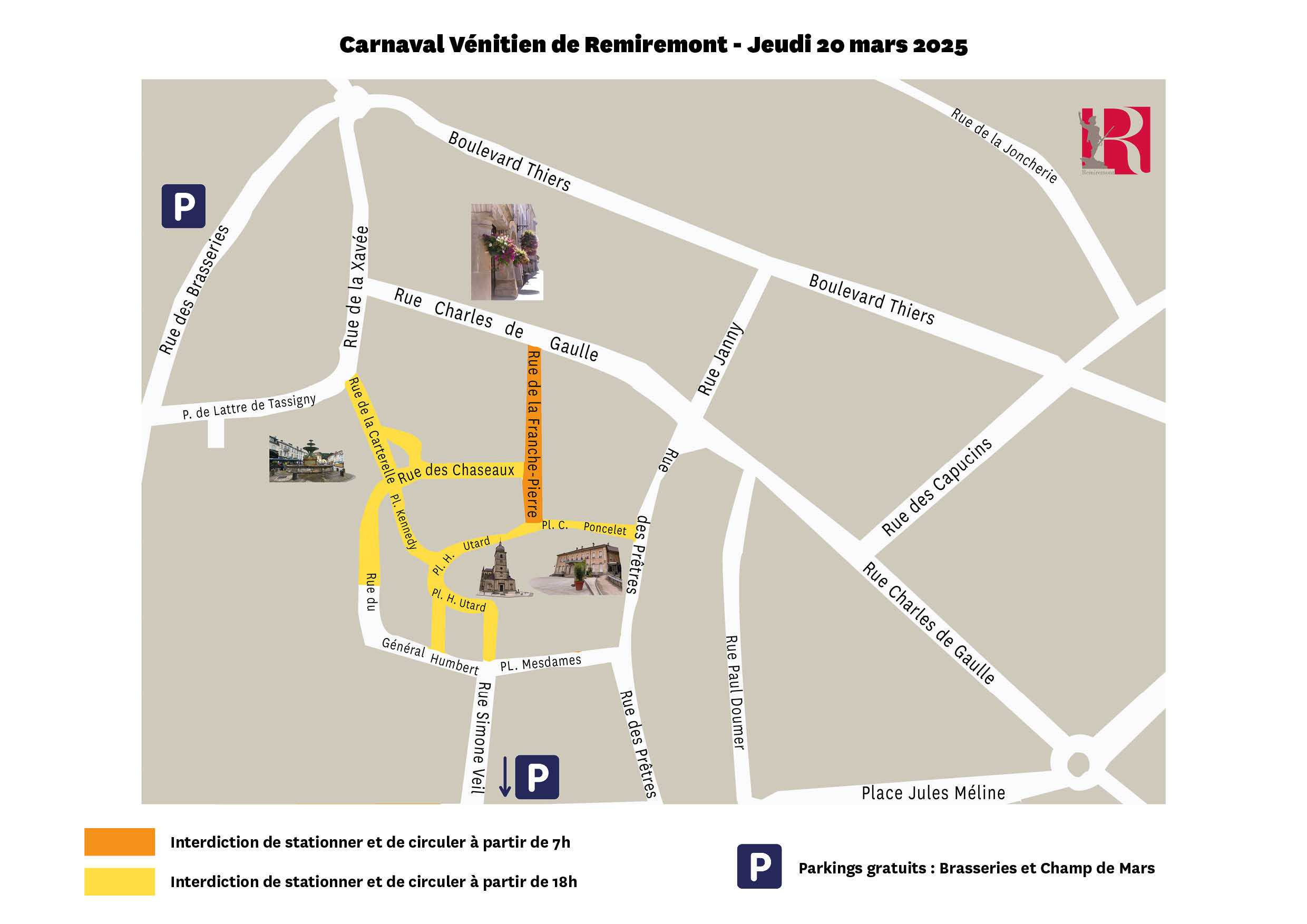 La 28ème édition du Carnaval Vénitien de Remiremont aura lieu du jeudi 20 au dimanche 23 mars, la circulation et le stationnement seront fortement perturbés dans l’hypercentre de la ville, ainsi que dans quelques rues annexes avec les travaux en cours pour l’installation du réseau de chaleur. Retrouvez toutes les informations ci-dessous :