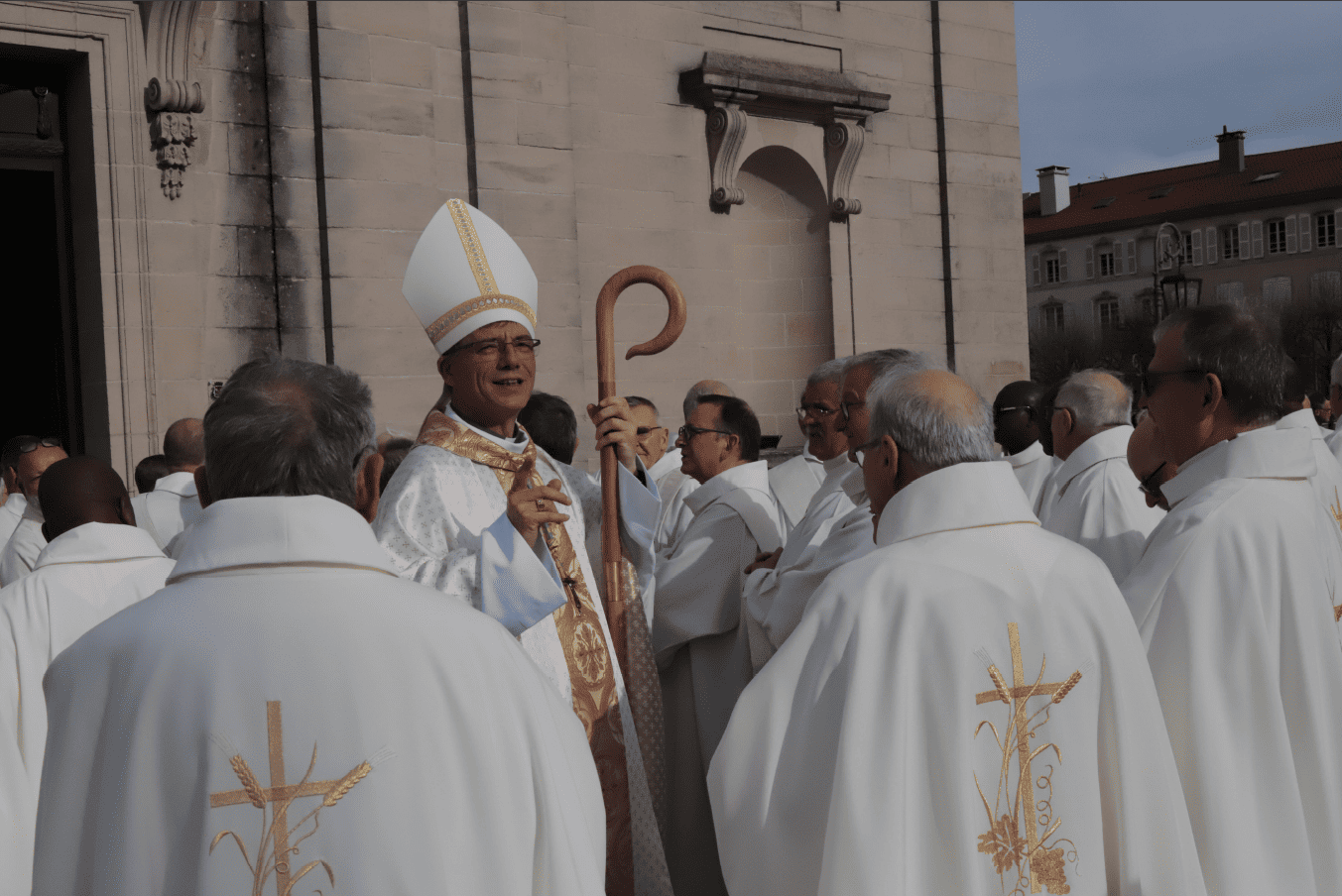 - Monseigneur Gourdon sur le parvis de l’abbatiale