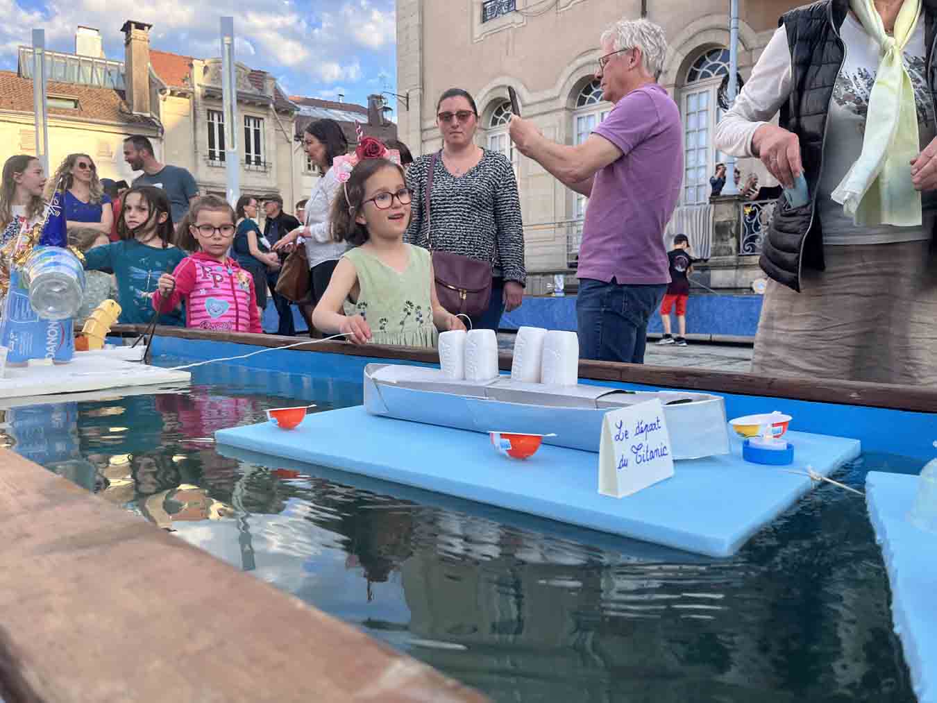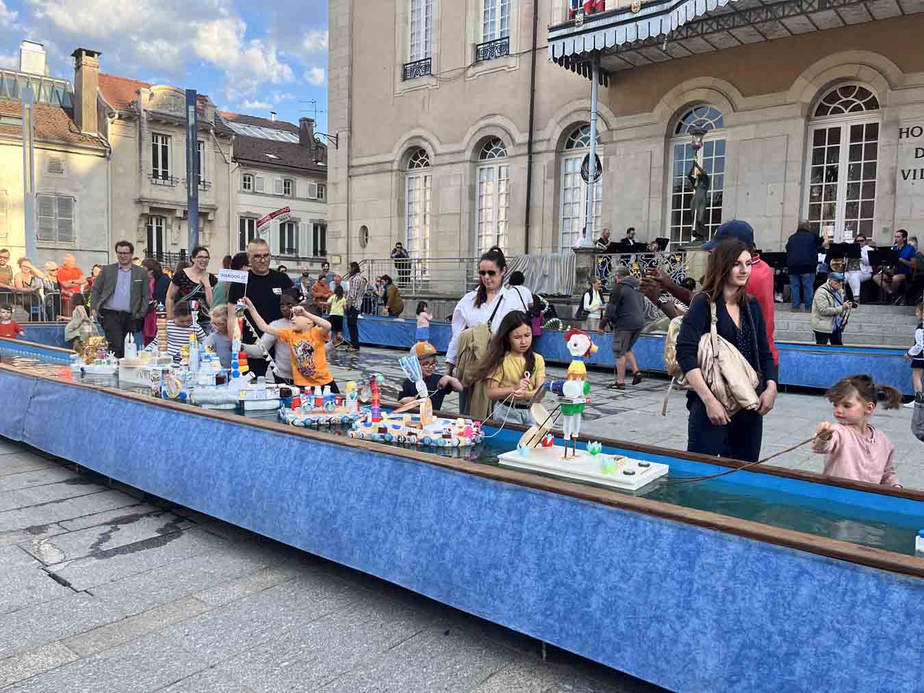 Ce mardi 29 avril dès 19h, la place de l’Hôtel de Ville de Remiremont a retrouvé l’effervescence joyeuse des Champs Golots, une tradition vosgienne qui continue de faire rêver les enfants comme les adultes. Environ soixante enfants, venus de Remiremont et des communes voisines, ont participé à cette édition haute en couleurs en faisant voguer leurs embarcations artisanales sous les yeux émerveillés du public.