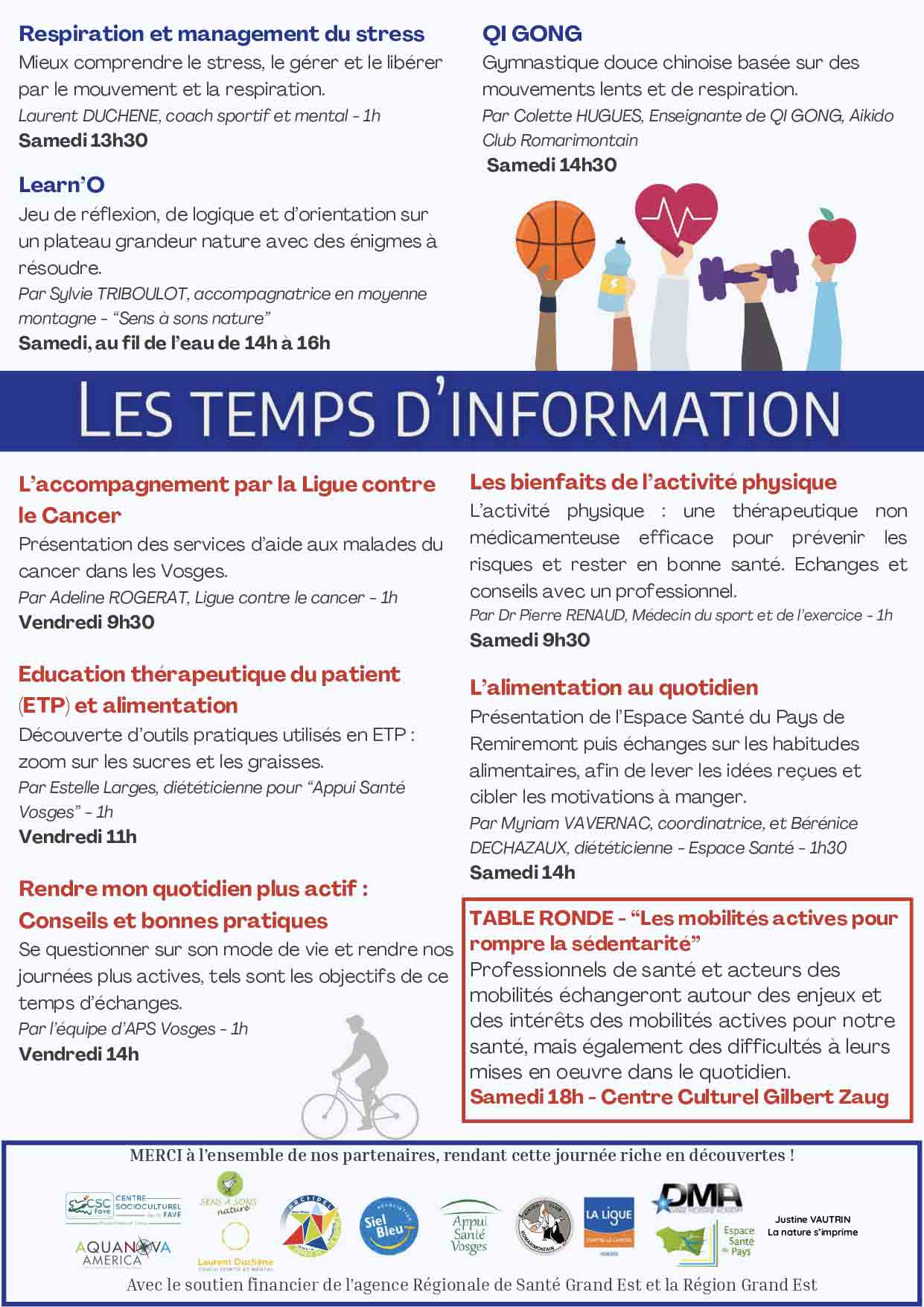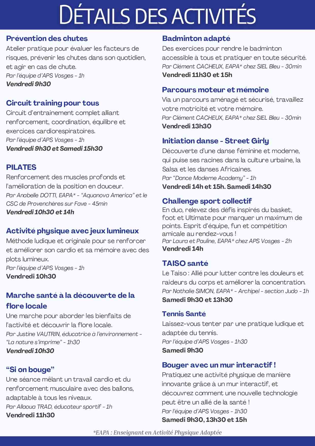 Labellisée « Maison Sport-Santé » et intégrée au dispositif Prescri’Mouv, l’APS Vosges se positionne comme une structure référente dans le département. Elle a été pensée pour que les professionnels de santé puissent y adresser leurs patients dans le cadre d’une prise en charge adaptée à leur état de santé.