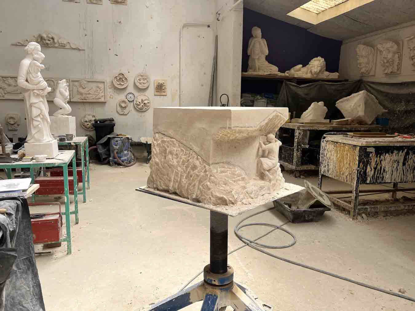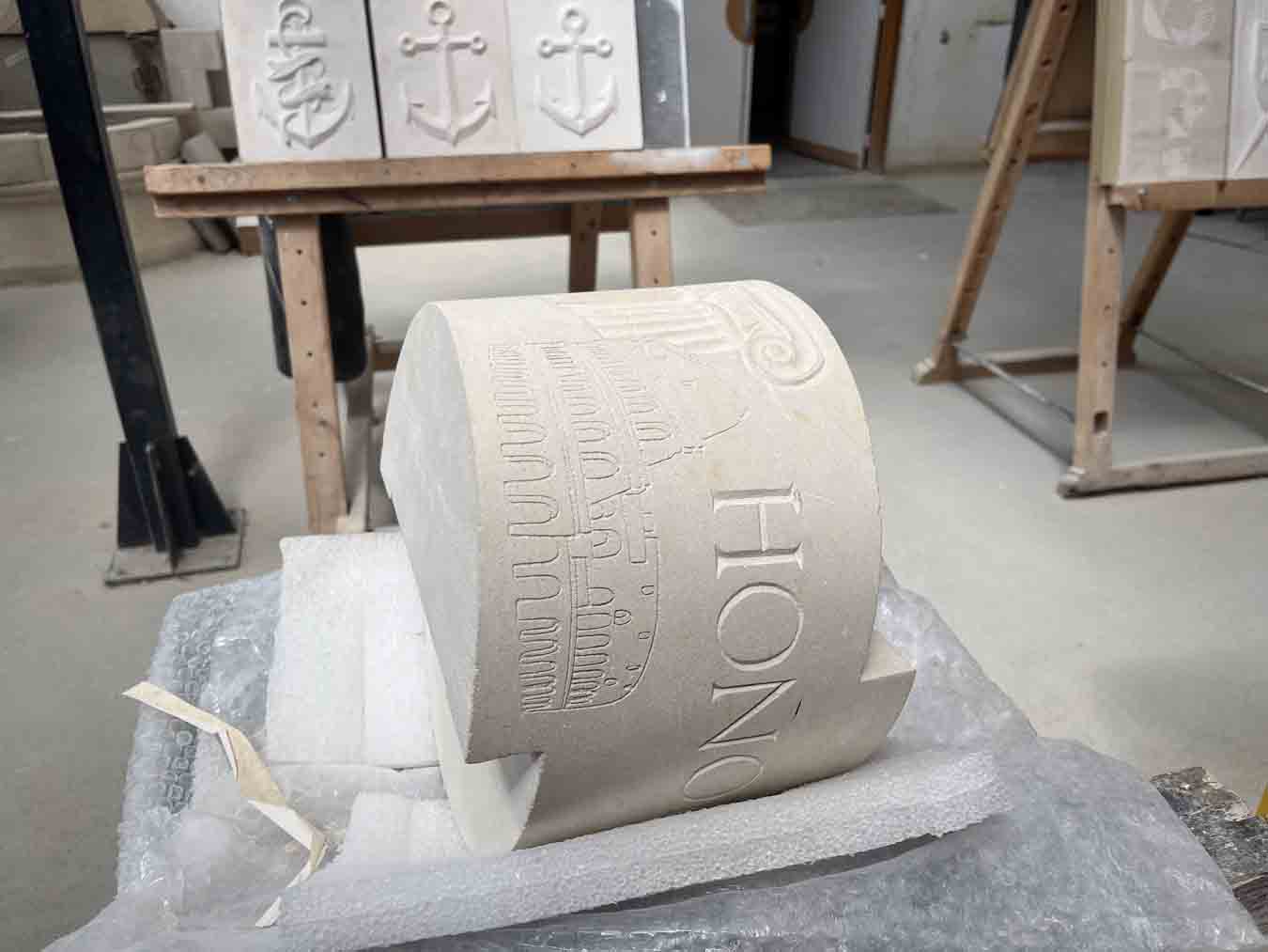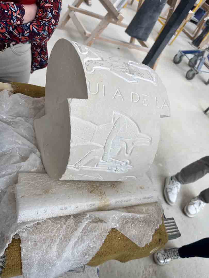 À Remiremont, ce sont les élèves des filières Gravure sur pierre et Métiers des arts de la pierre qui se sont attelés à la réalisation d’un projet ambitieux et symbolique : une colonne Trajane contemporaine, inachevée et segmentée, inspirée de la célèbre œuvre romaine.