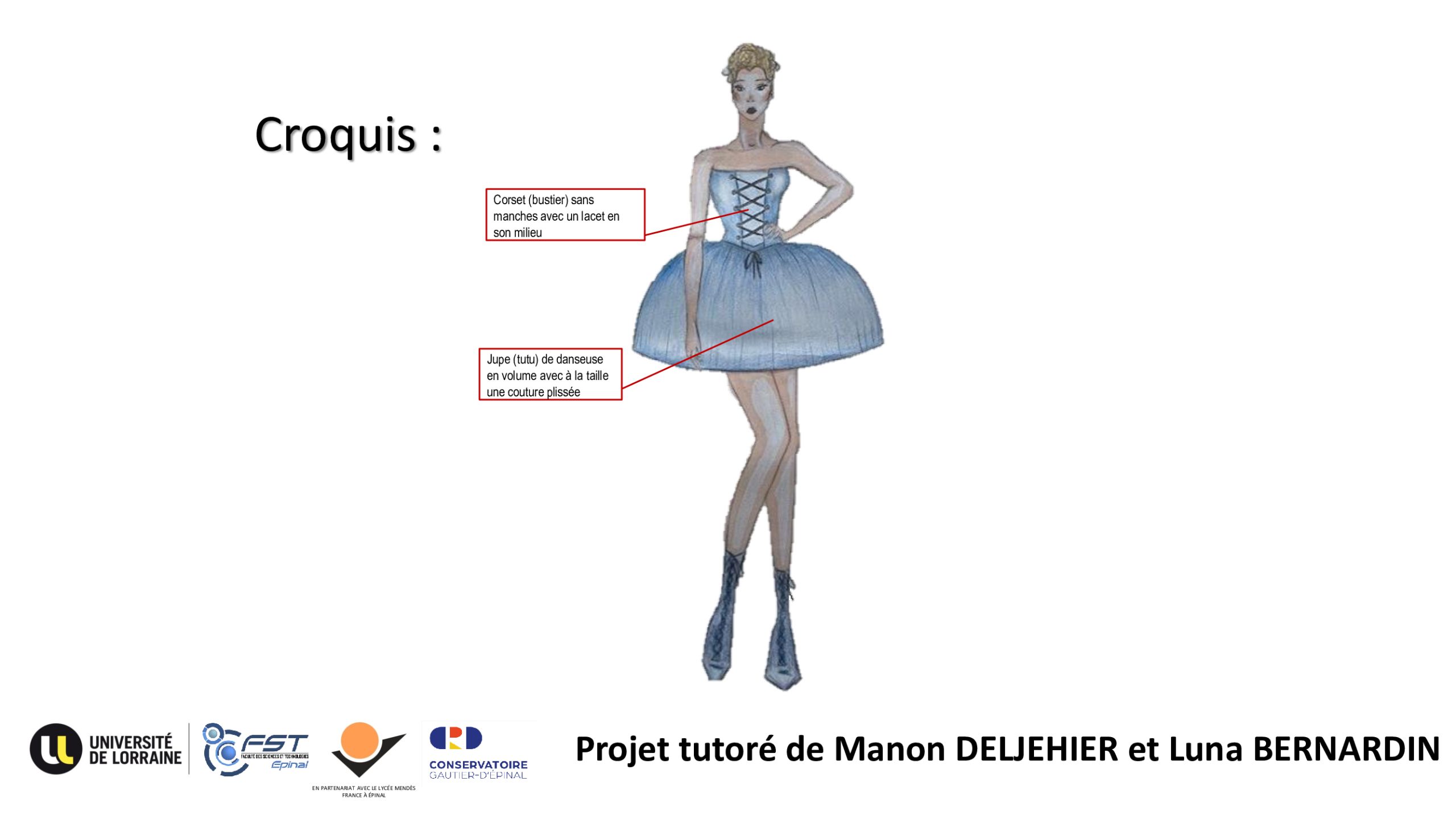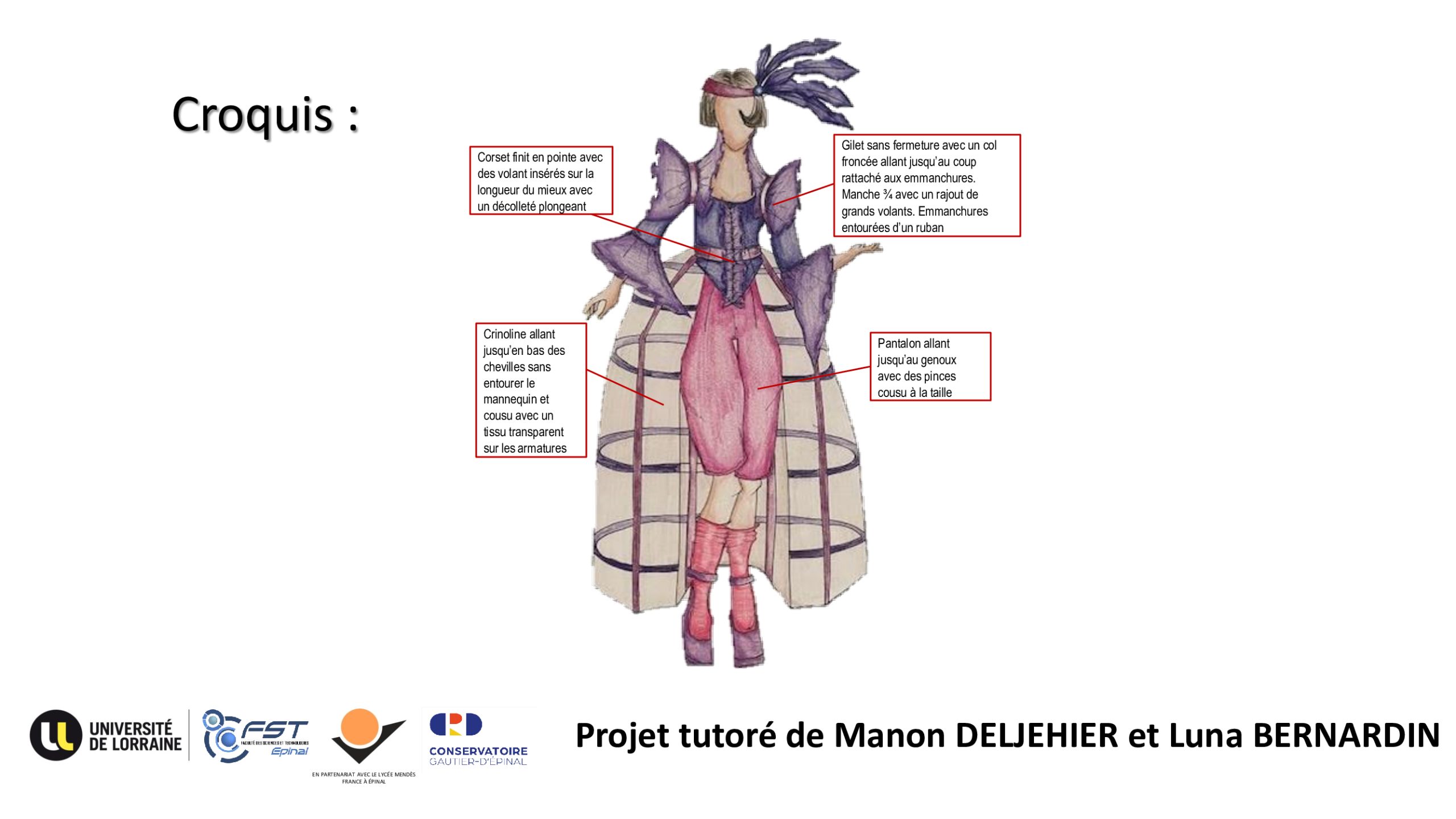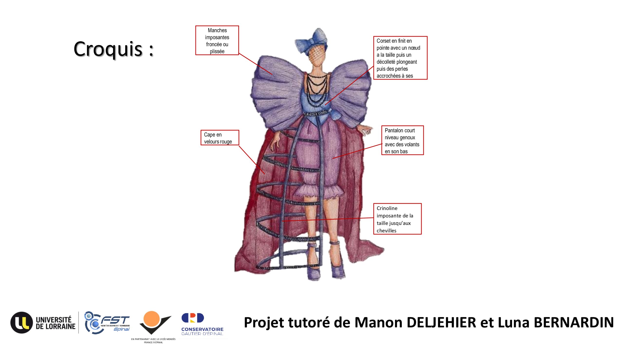 À l’occasion de cette création, le Conservatoire Gautier-d’Épinal s’est associé aux étudiants de la Licence Professionnelle « Métiers de la Mode » de l’antenne d’Épinal de la Faculté des Sciences et Technologies (Université de Lorraine). Ensemble, ils ont conçu six costumes originaux spécialement imaginés pour la représentation.