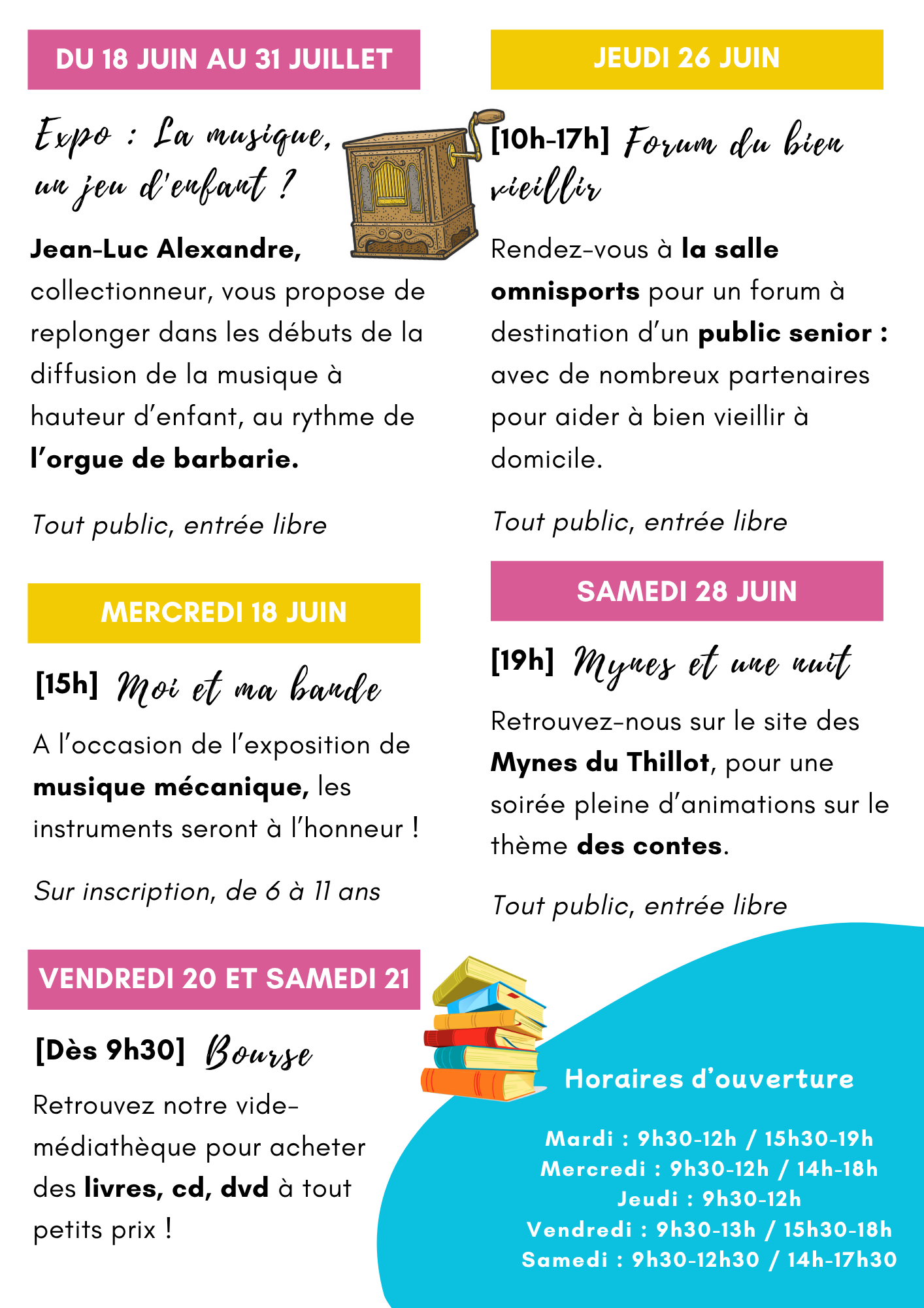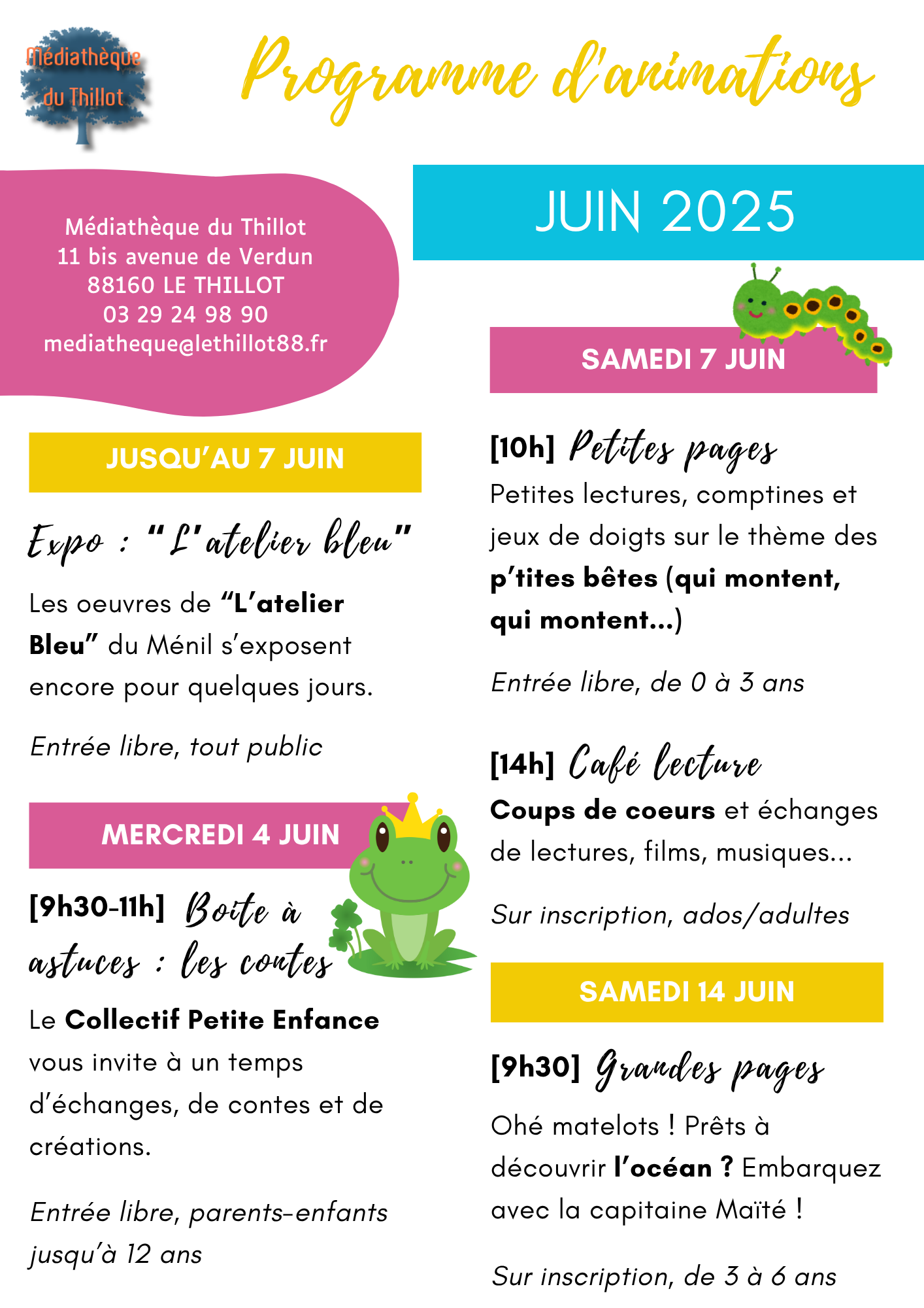 Retrouvez ci-dessous le programme des animations de juin à la médiathèque du Thillot :