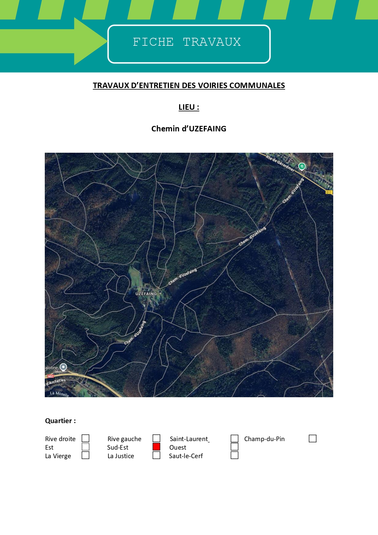 La circulation sera interdite sur le chemin d’Uzefaing, sur la journée du lundi 2 juin. Les travaux seront principalement effectués en partie basse du hameau. L’accès à Uzefaing ne sera autorisé qu’aux riverains, par la route de Gérardmer.