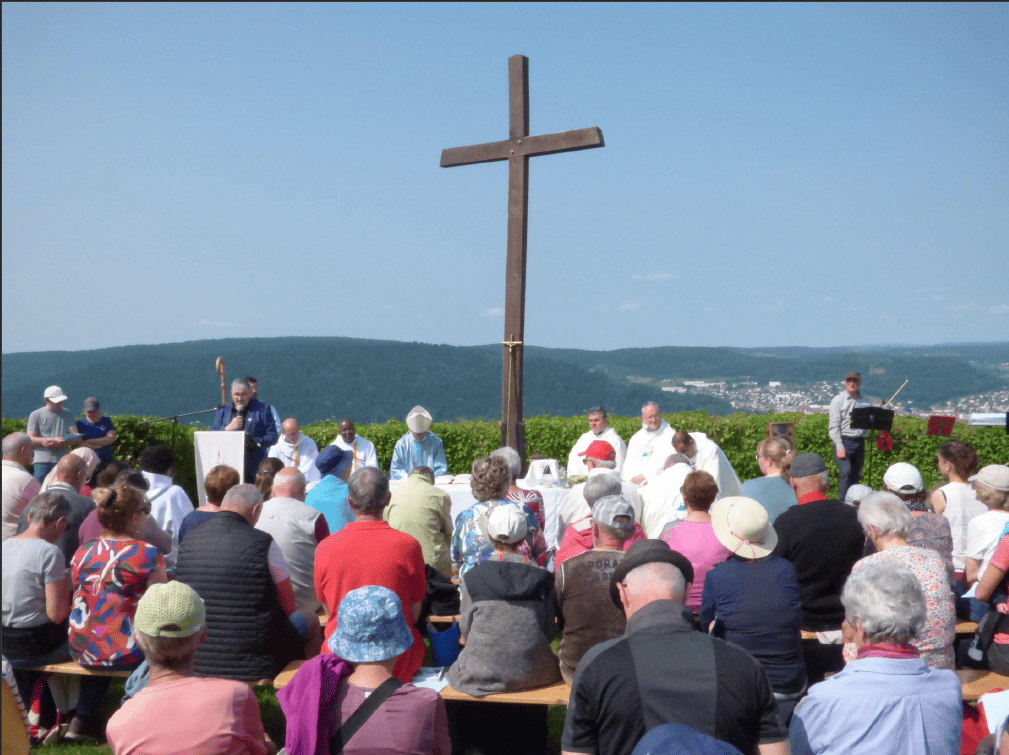 Près de 150 catholiques se sont retrouvés au sommet du Saint-Mont ce lundi, jour de fête de la Pentecôte, pour assister à une messe d’Action de Grâces présidée et célébrée par Mgr François Gourdon, évêque du diocèse.