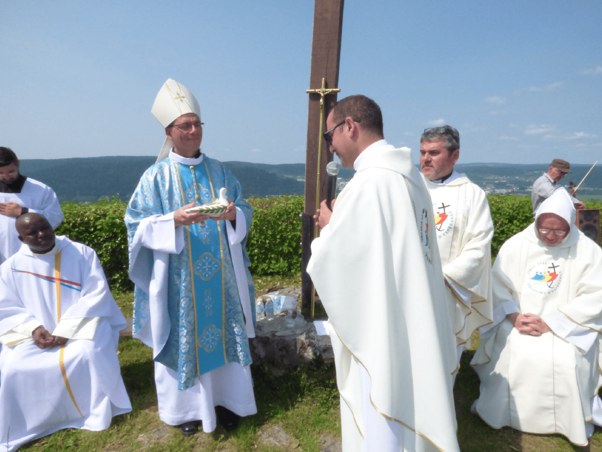 - Remise de la colombe à l’Evêque
