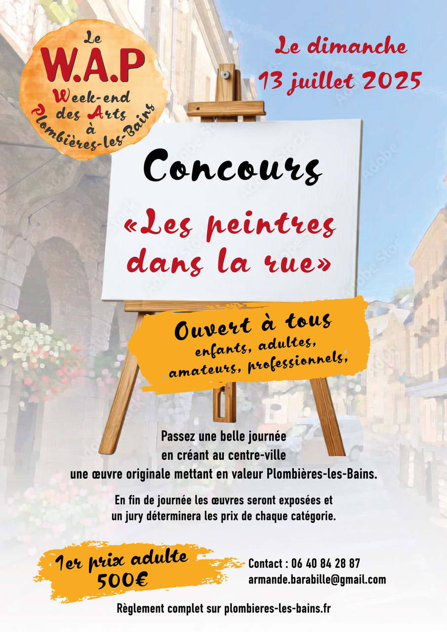 Le dimanche 13 juillet, place aux Peintres dans la rue, un concours ouvert à tous, des enfants aux professionnels. Créez votre œuvre sur place, laissez parler votre talent, et participez à une journée conviviale dans un cadre inspirant.