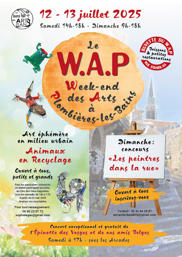 La Source des Art’isans donne à nouveau rendez-vous aux amateurs d’art et de création pour le WAP (Week-end des Art’), les 12 et 13 juillet 2025 à Plombières-les-Bains. Un événement devenu incontournable, porté par l’enthousiasme collectif et l’imagination sans limite des habitants de toute la région !