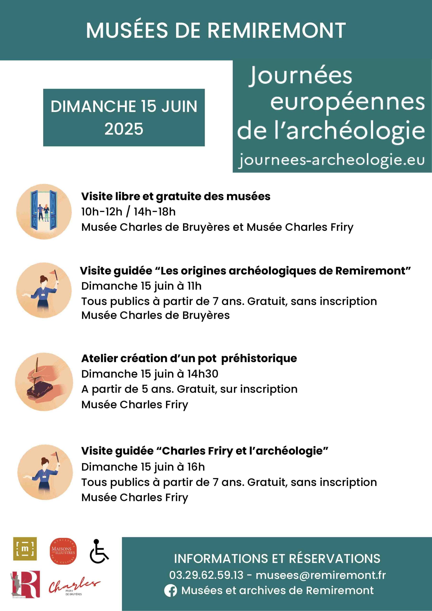 Tout au long de la journée, l’entrée aux musées de la ville sera libre et gratuite, permettant aux visiteurs de parcourir les collections à leur rythme. Des visites guidées spéciales sont également proposées pour mieux comprendre les origines archéologiques de Remiremont. Les plus jeunes – et les curieux de tous âges – pourront aussi participer à un atelier de création d’un pot préhistorique, pour s’initier aux gestes et techniques de nos lointains ancêtres. Un moment créatif et instructif à vivre en famille.