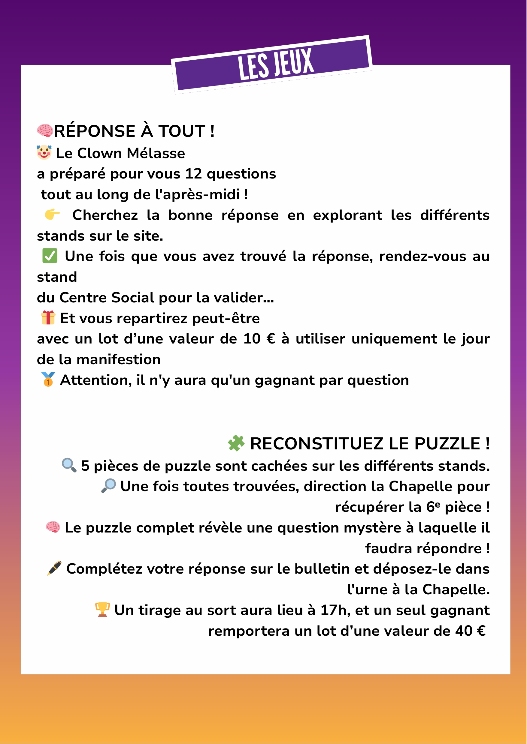 Un grand jeu familial avec de nombreux lots à gagner ;